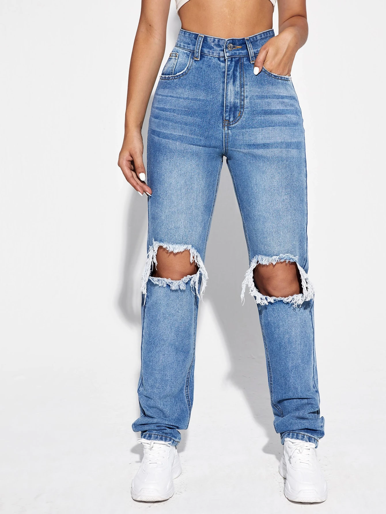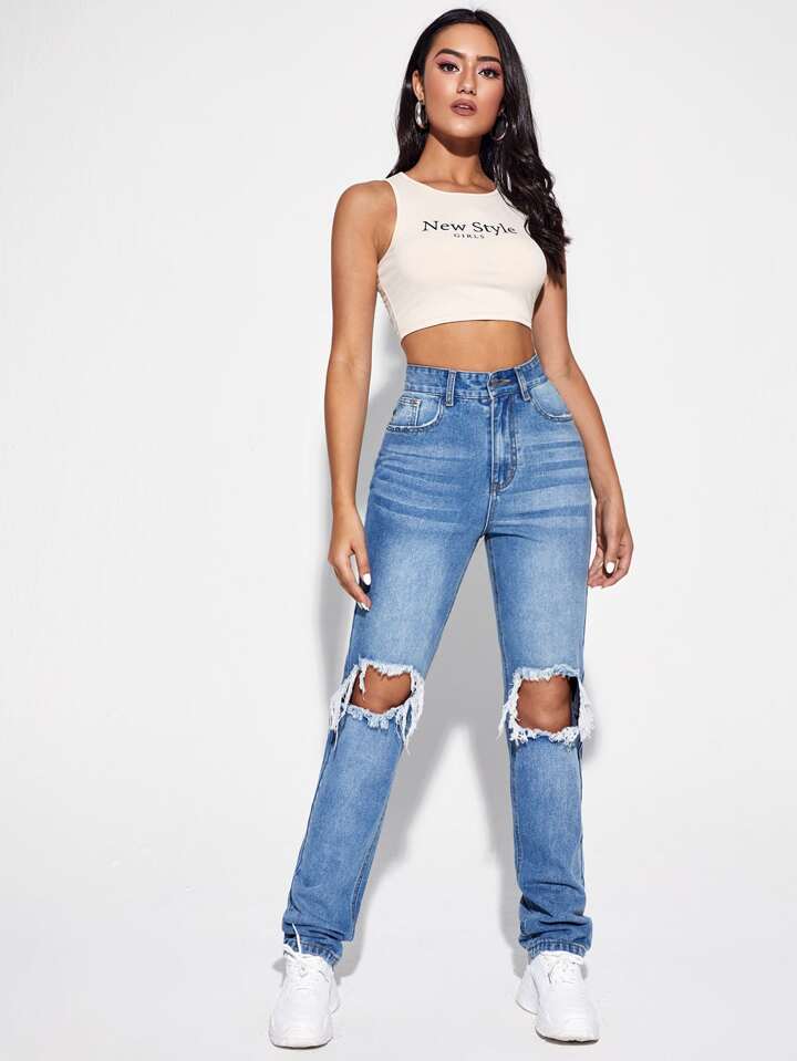 High Waisted Ripped Jeans