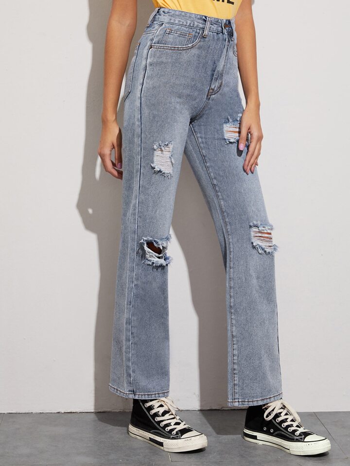 High Waisted Ripped Straight Leg Jeans