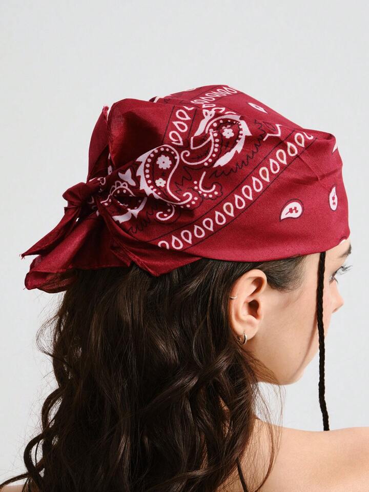 Hippie 1pc Bohemian Style Headscarf, Y2K Paisley & Cashew Floral Print Square Scarf, Fashionable & Unique Headpiece