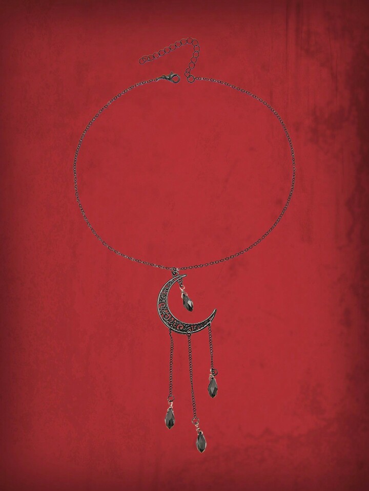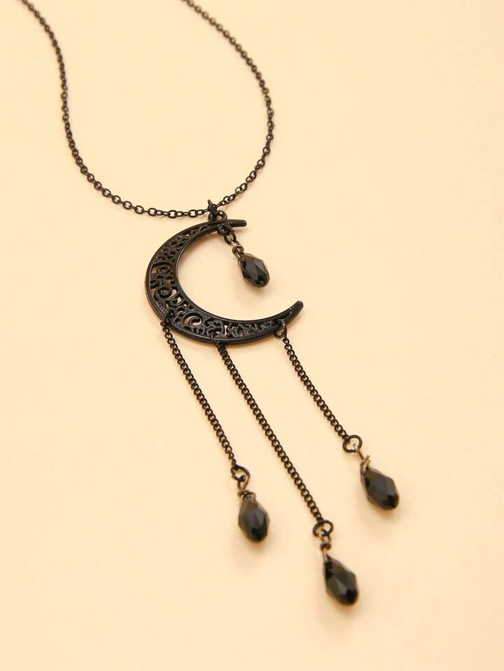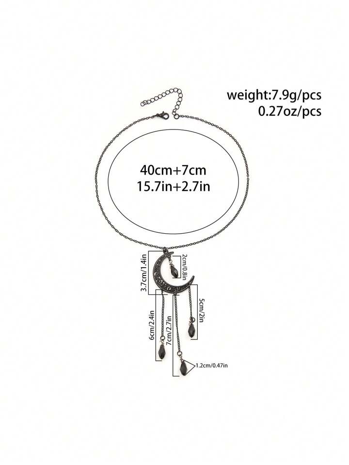 Hippie 1pc Fashionable Simple Moon Shaped Rhinestone Tassel Pendant Necklace