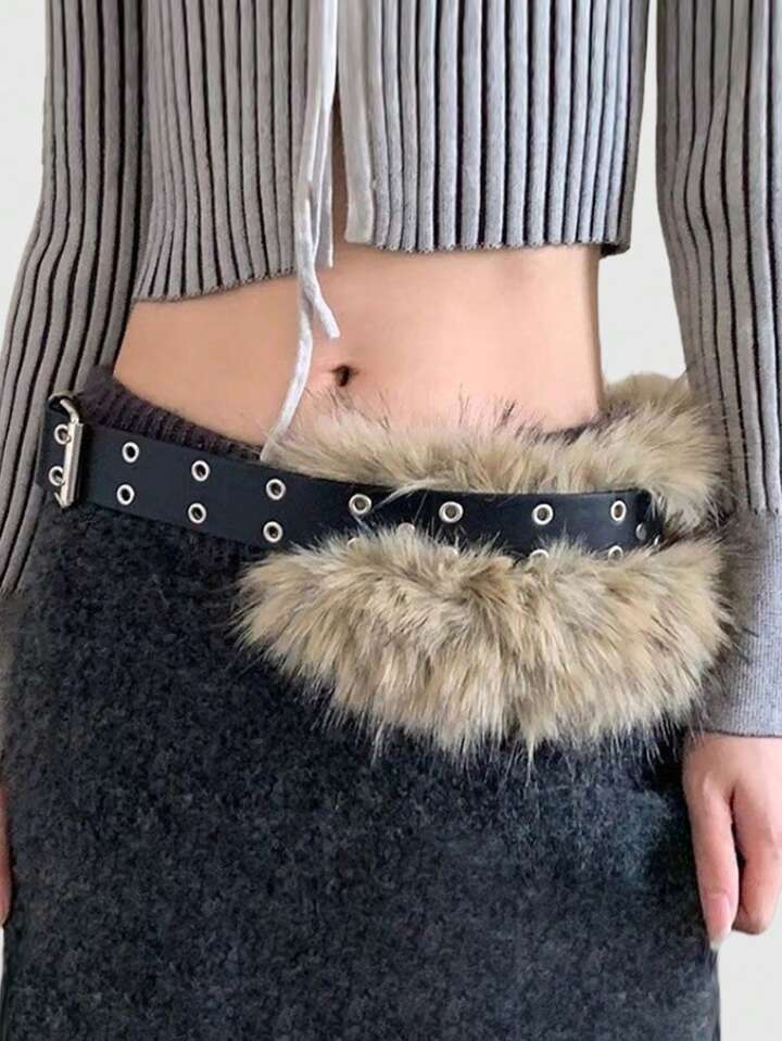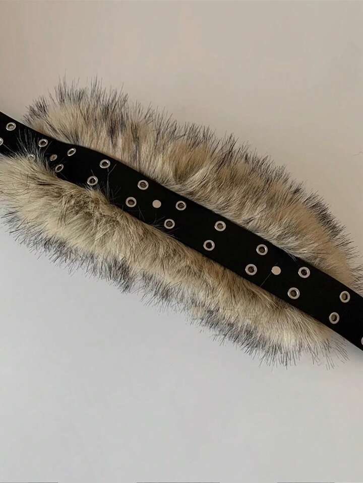 Hippie 1pc Punk Style Furry Patchwork Belt, Y2K Fashion Double Air Vents Leather Belt, Personalized Decoration Accessory