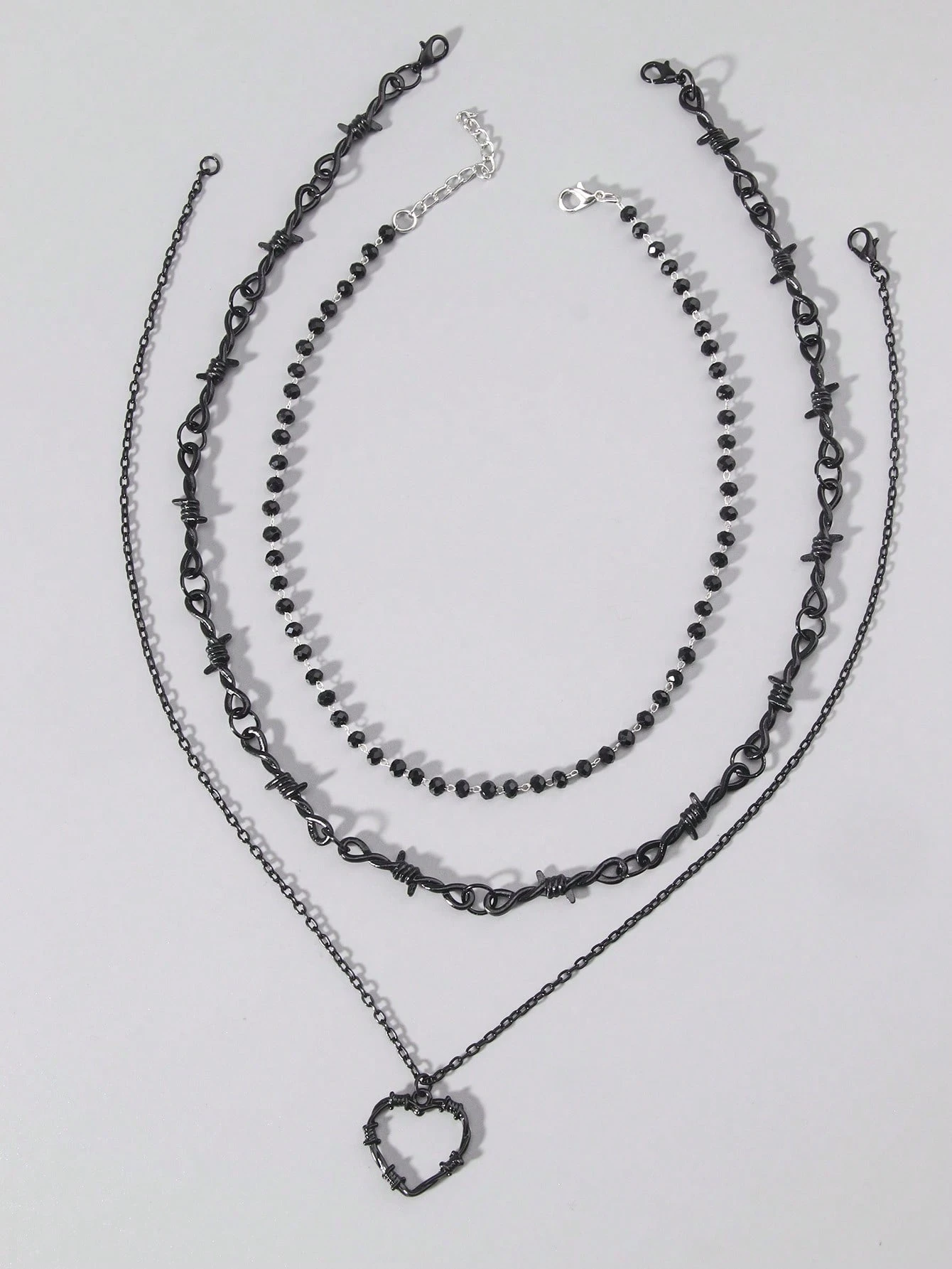 Hippie 2pcs Gothic Fashion Luxury Crystal, Heart-Shaped Thorn Pendant Multilayer Necklace For Women, Holiday Gift