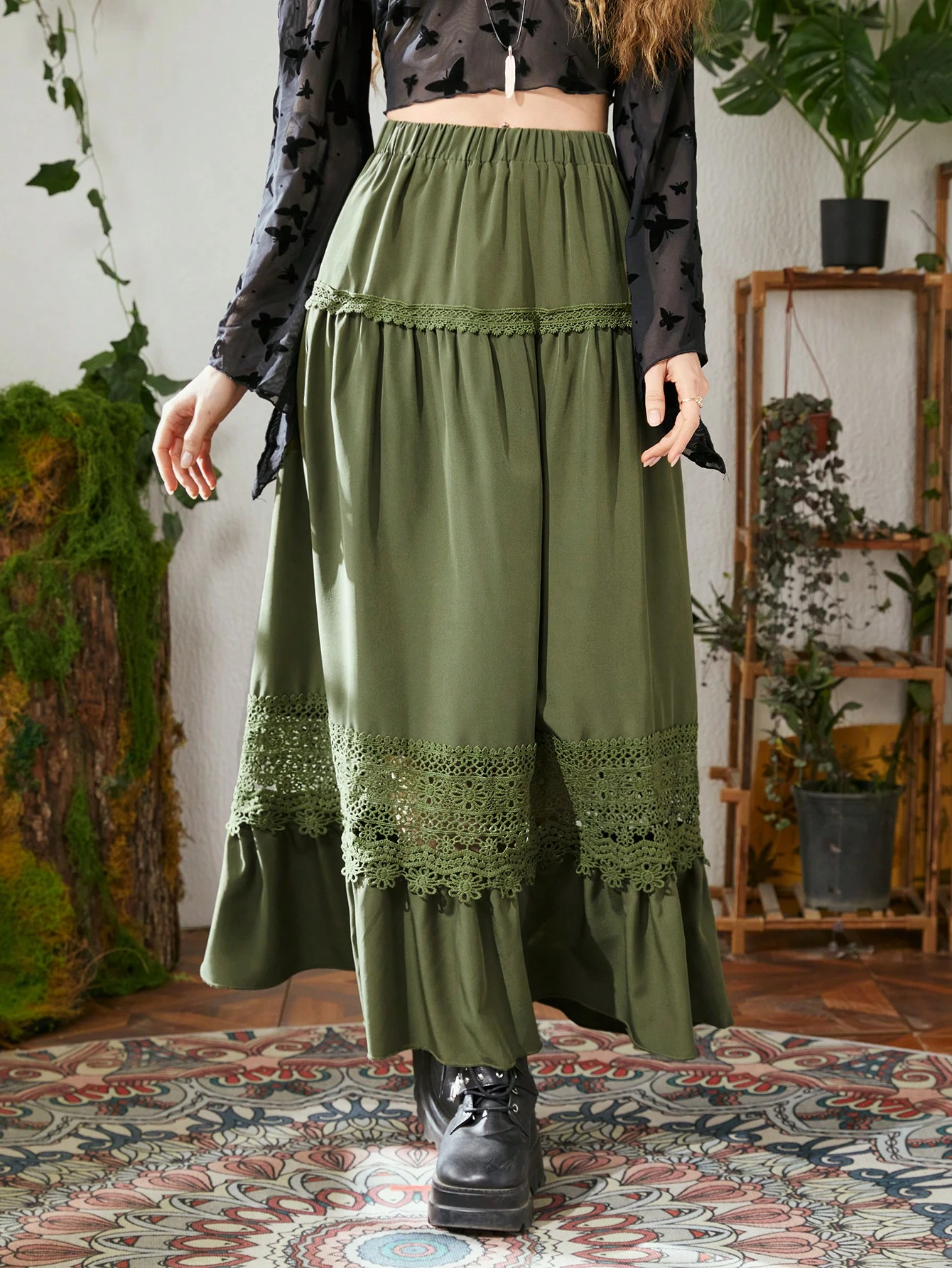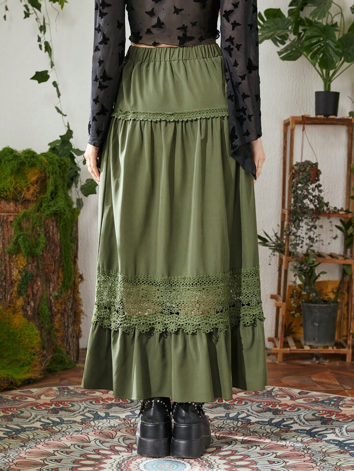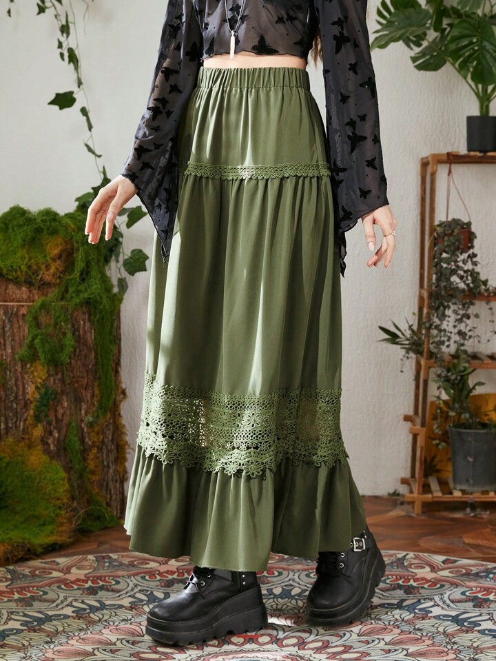 Hippie Contrast Lace Ruffle Hem Skirt