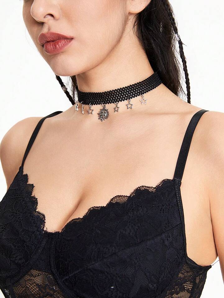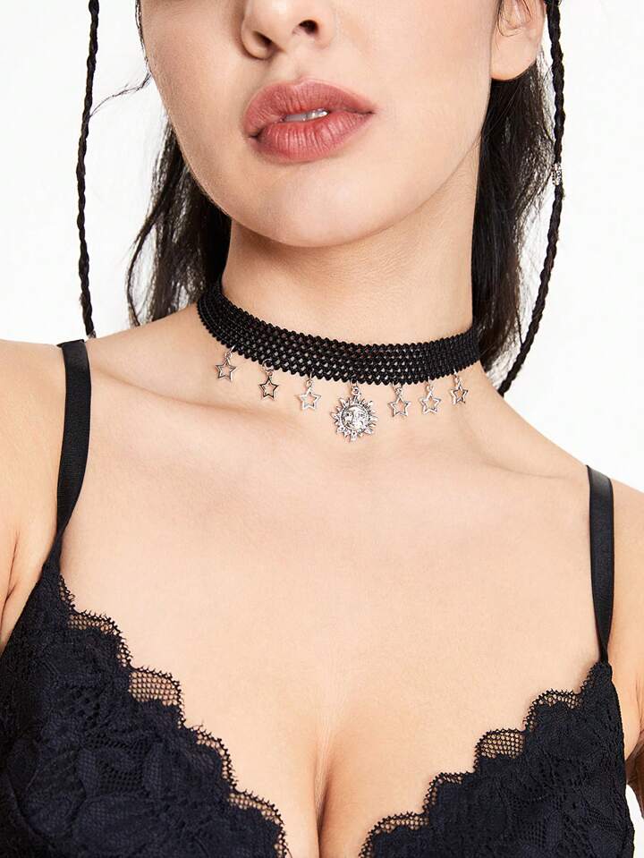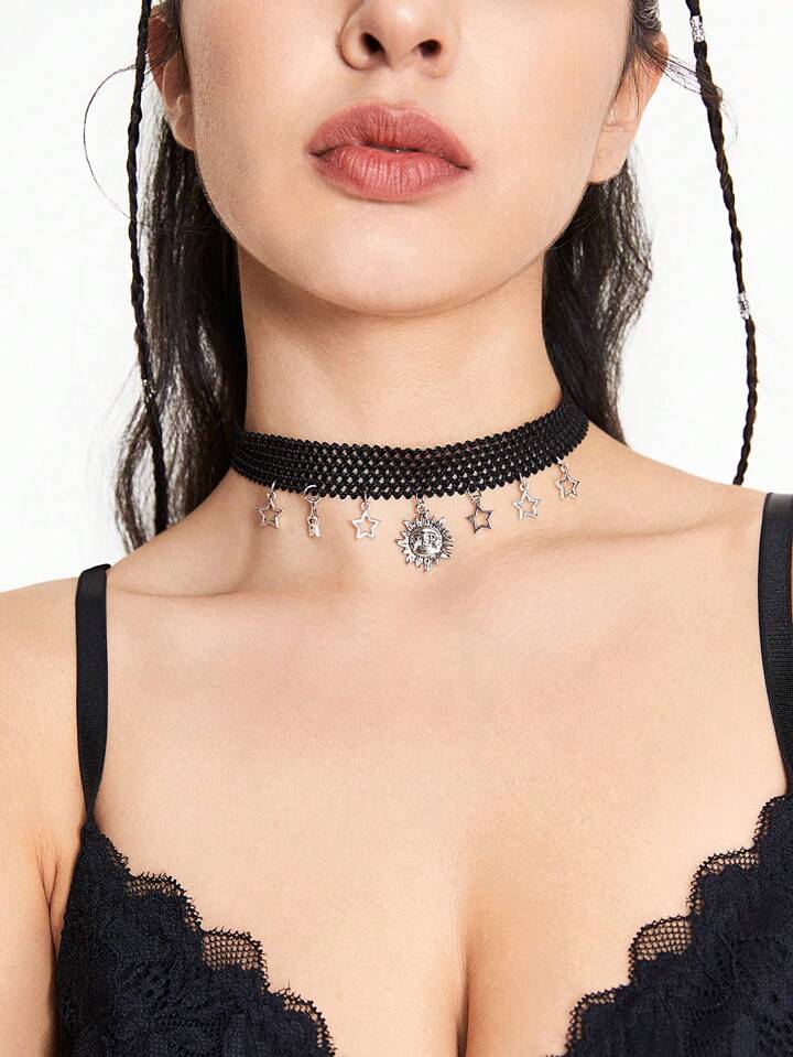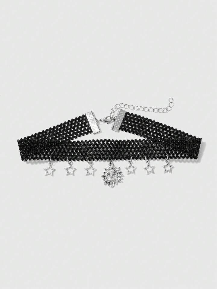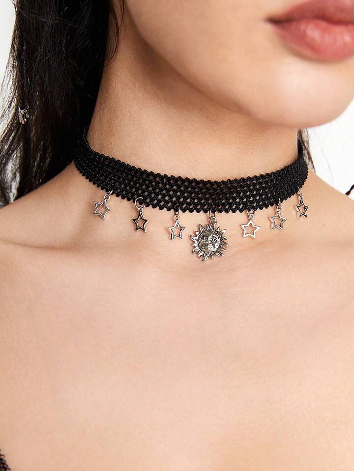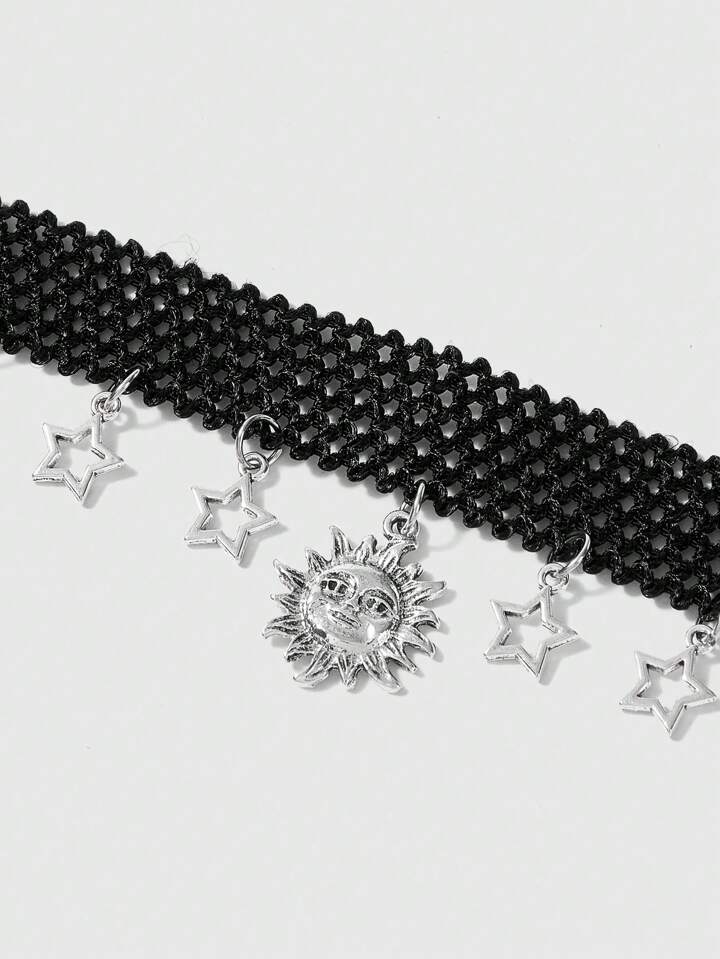 Hippie Creative Retro Style Sun & Star Pendant Elastic Cord Necklace For Fashion