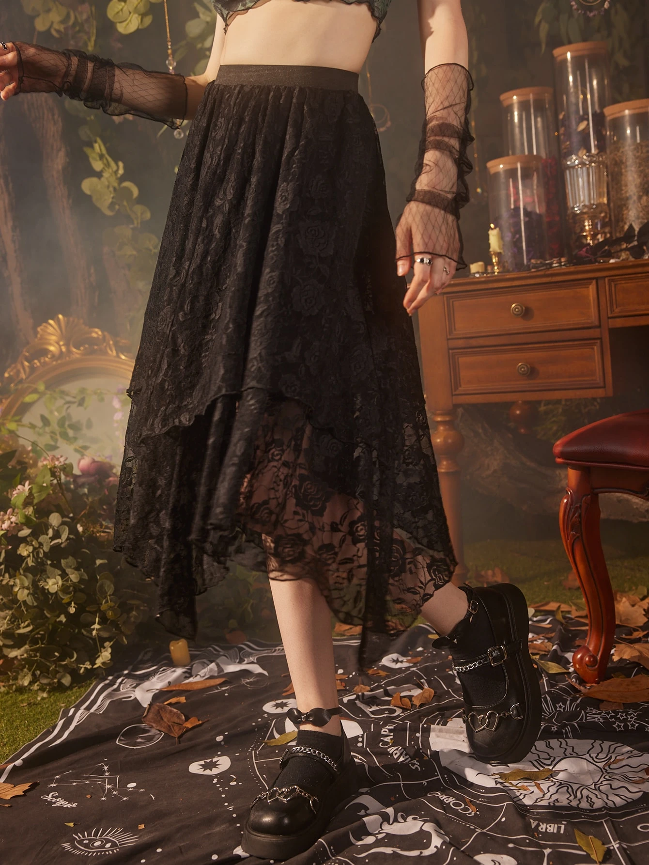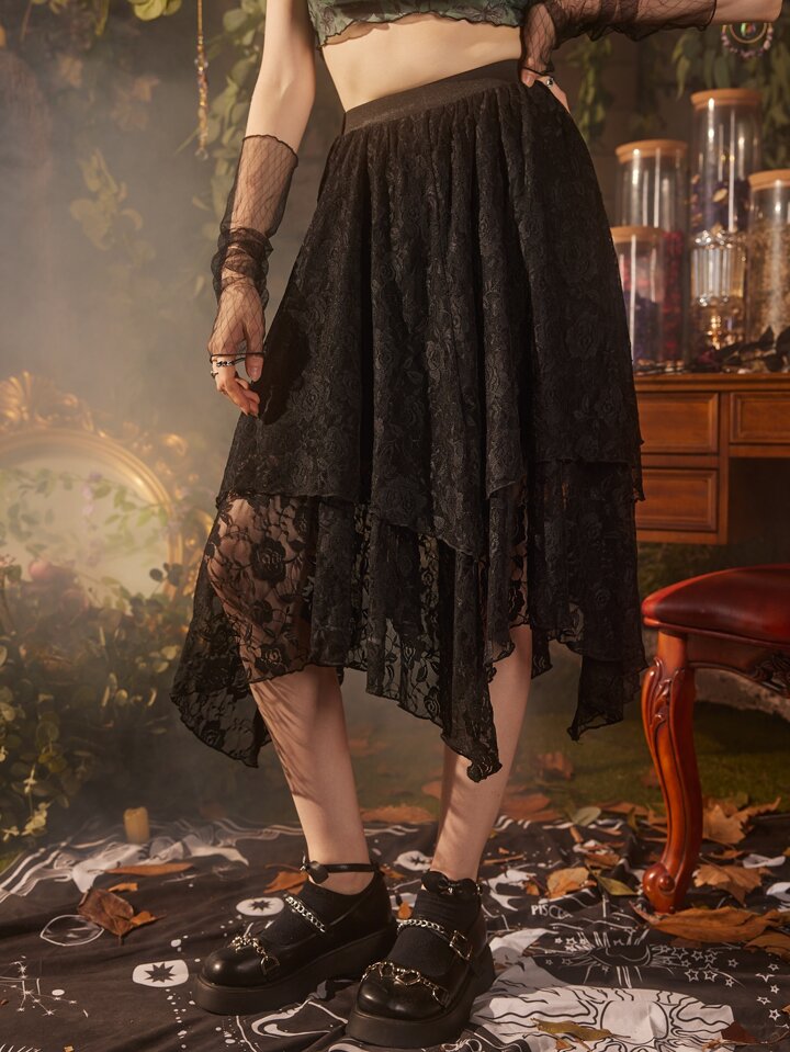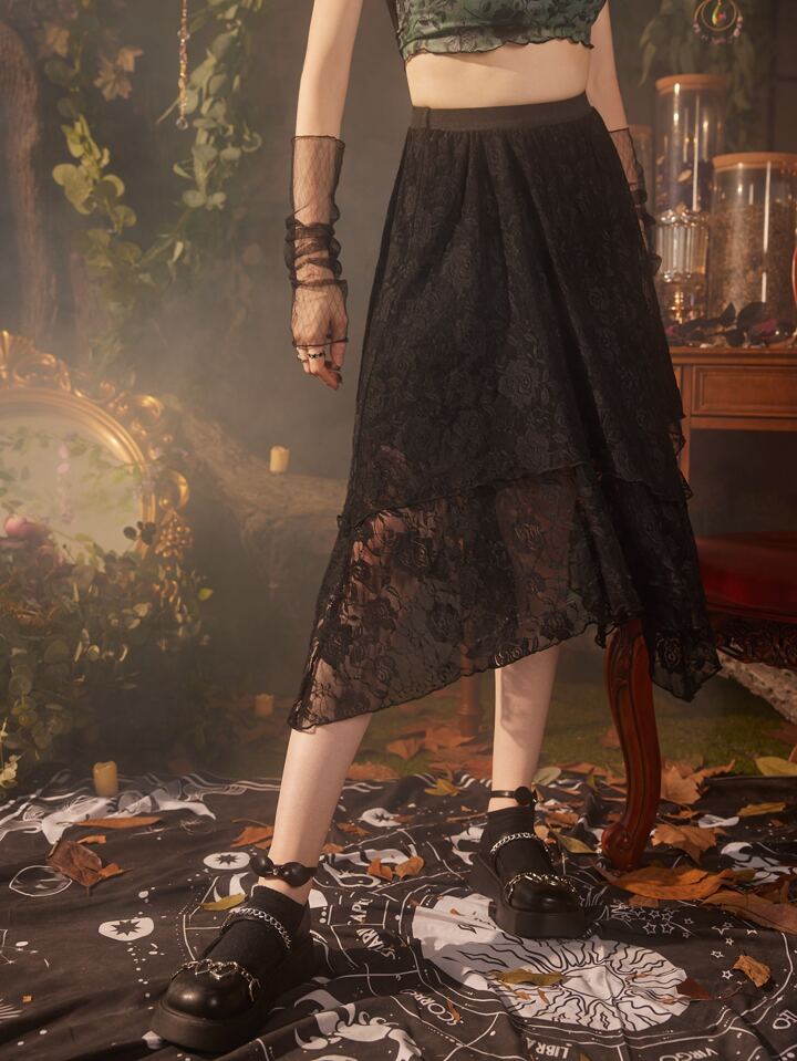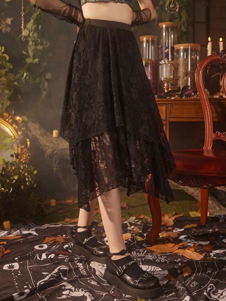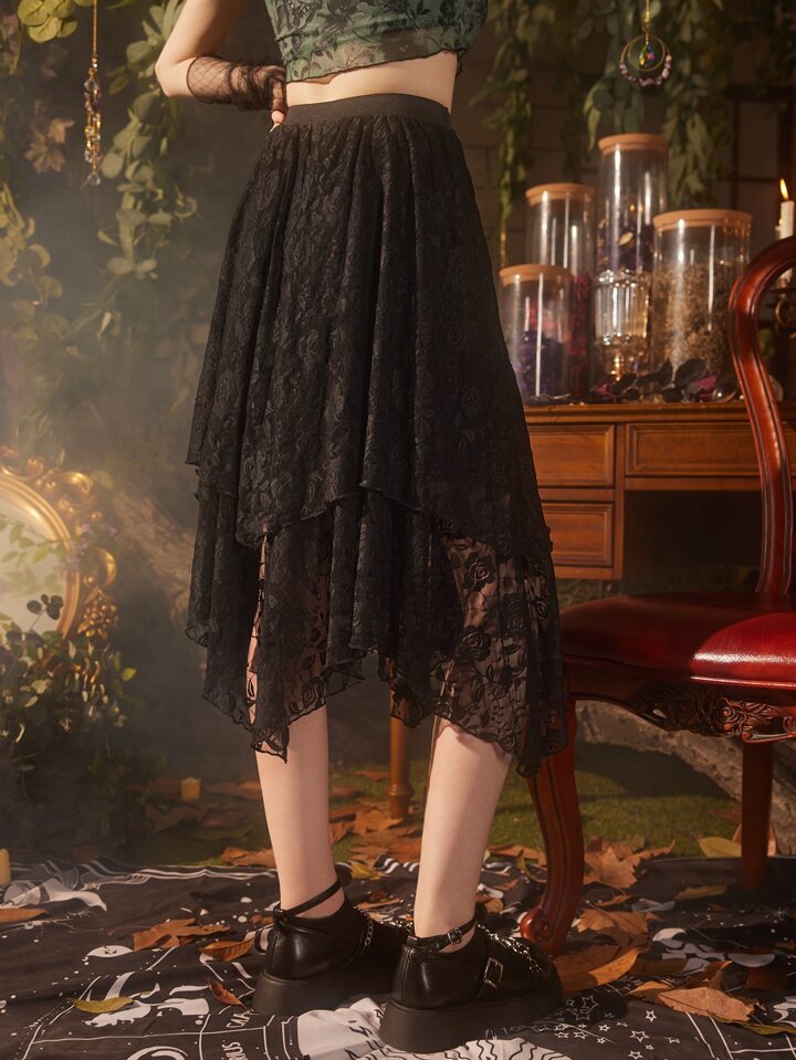 Hippie Floral Lace Asymmetric Skirt