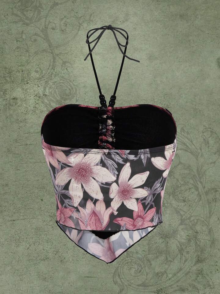Hippie Floral Print Bandana Hem Halter Top