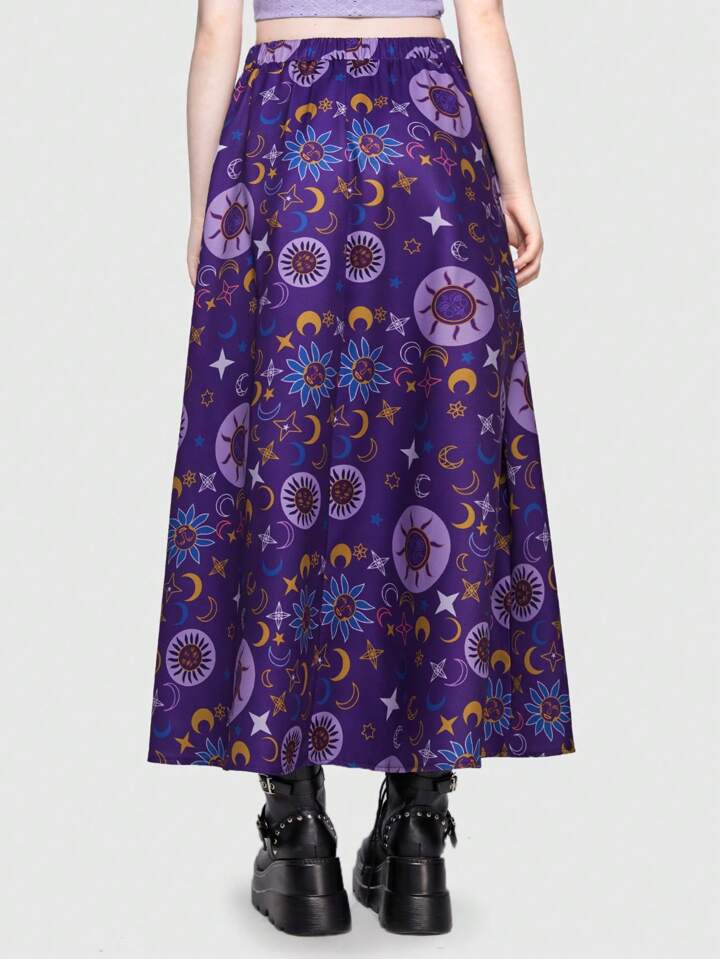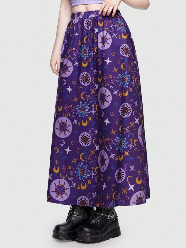 Hippie Floral & Star Print Elastic Waist Skirt