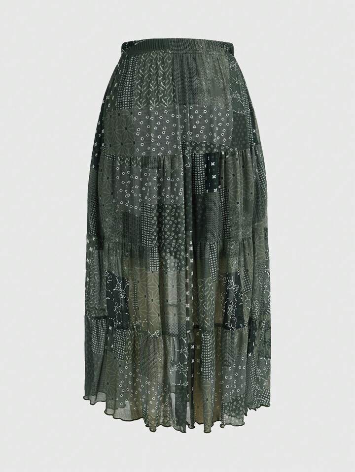Hippie Patchwork Print Ruffle Hem Skirt