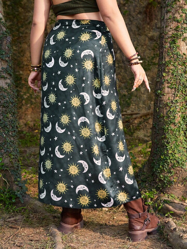 Hippie Plus Tie Dye Sun & Moon Print Knot Side Wrap Skirt