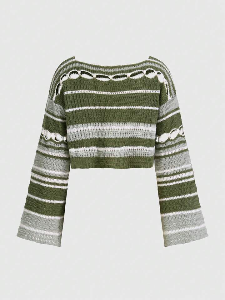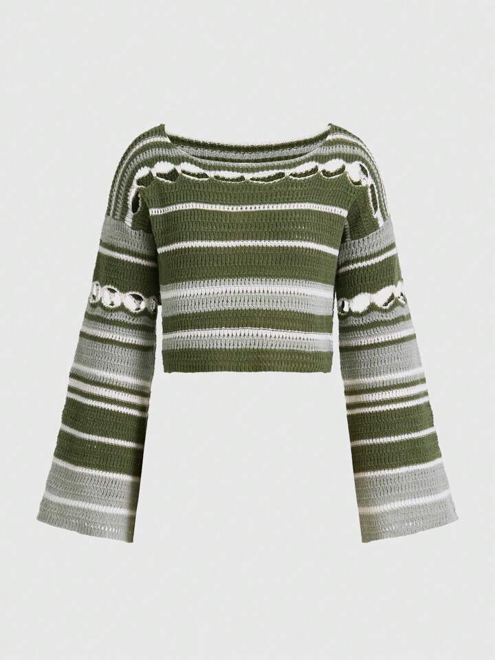 Hippie Striped Pattern Bell Sleeve Crop Sweater