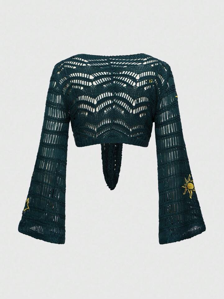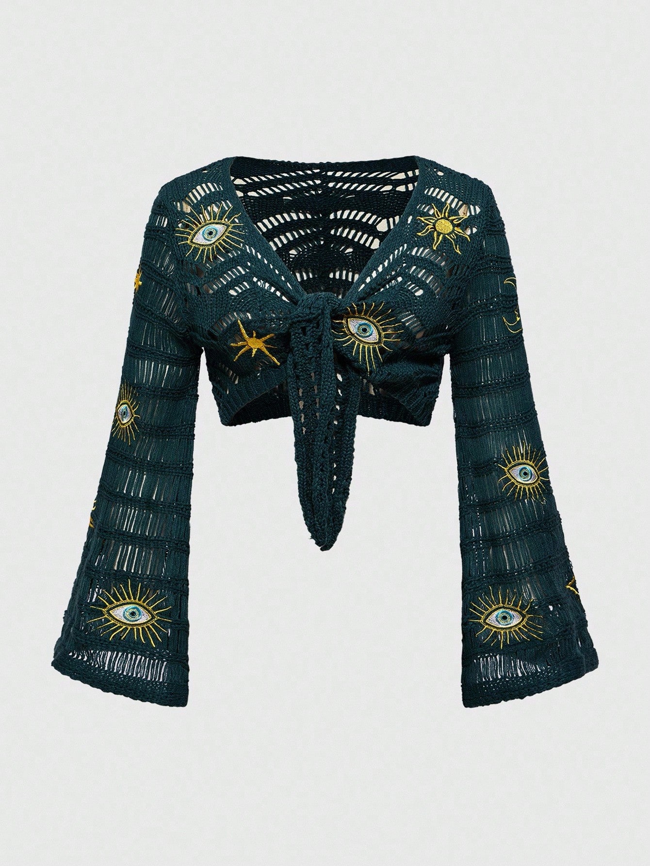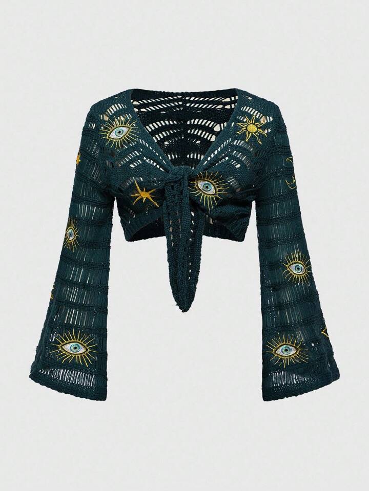 Hippie Sun, Moon, Star & Eye Embroidered Lightweight Cardigan