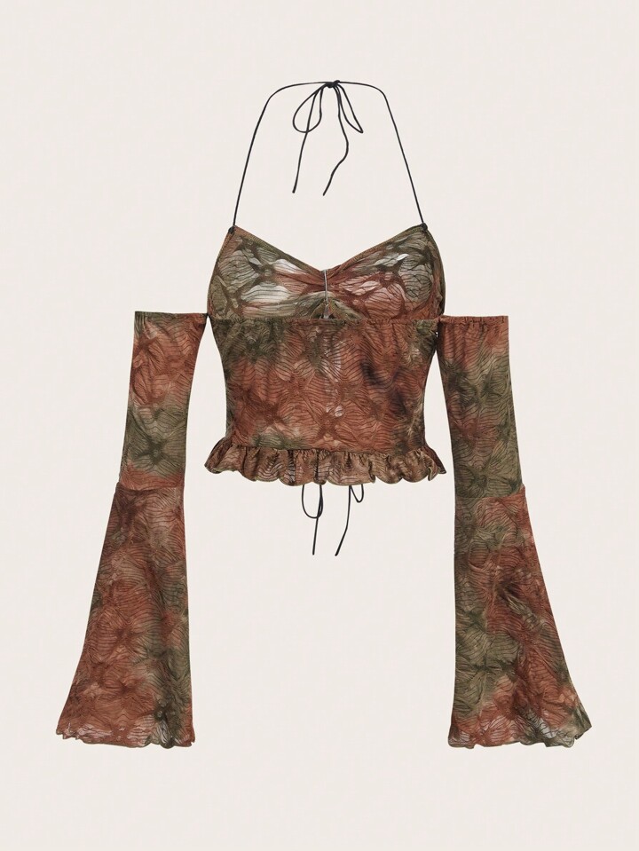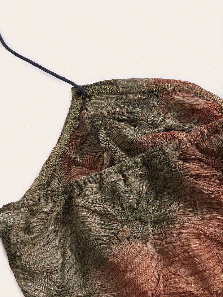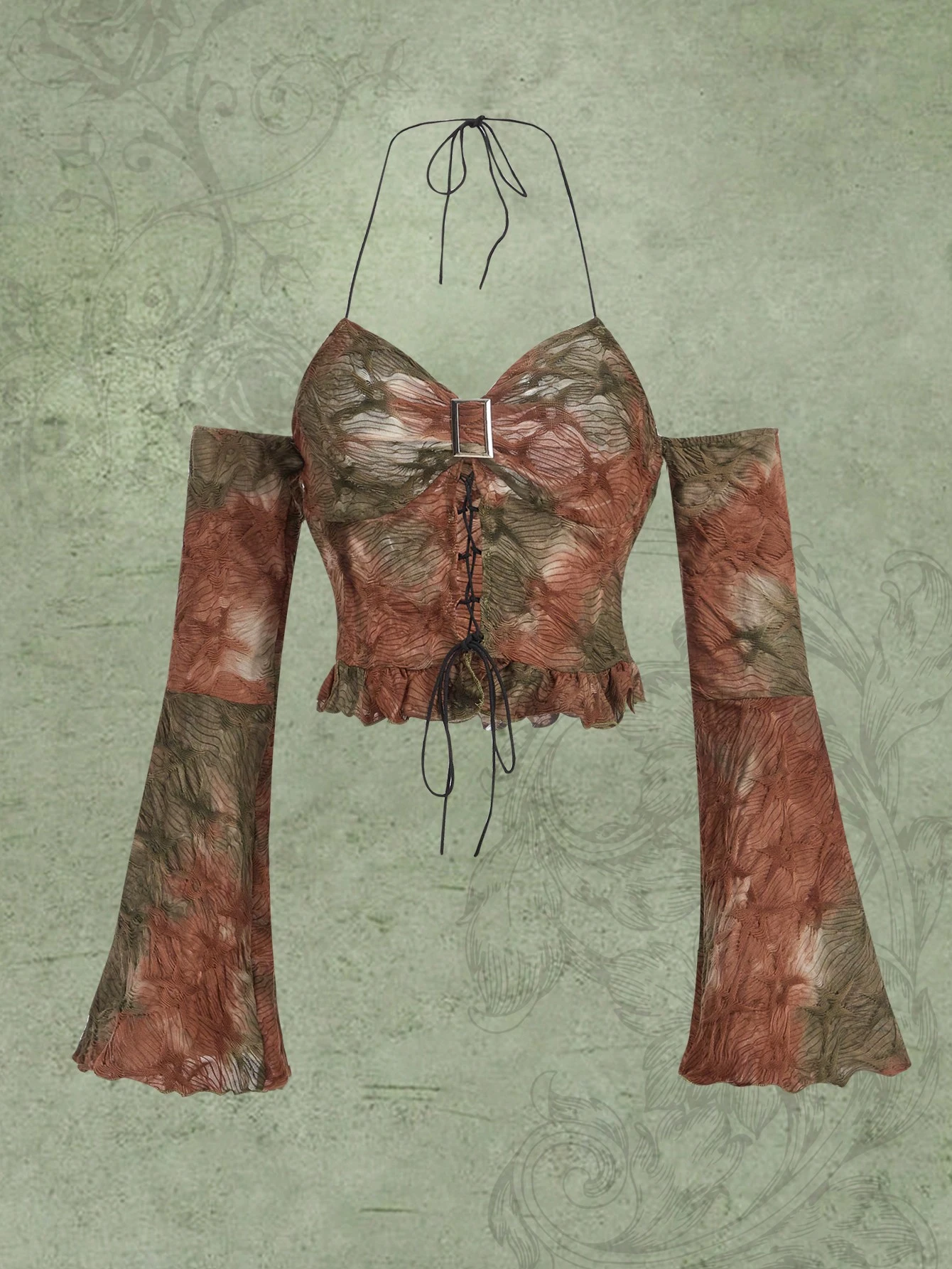 Hippie Tie Dye Lace Up Front Ruffle Hem Halter Top