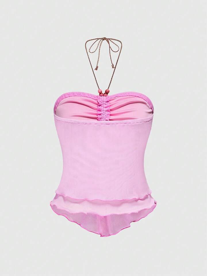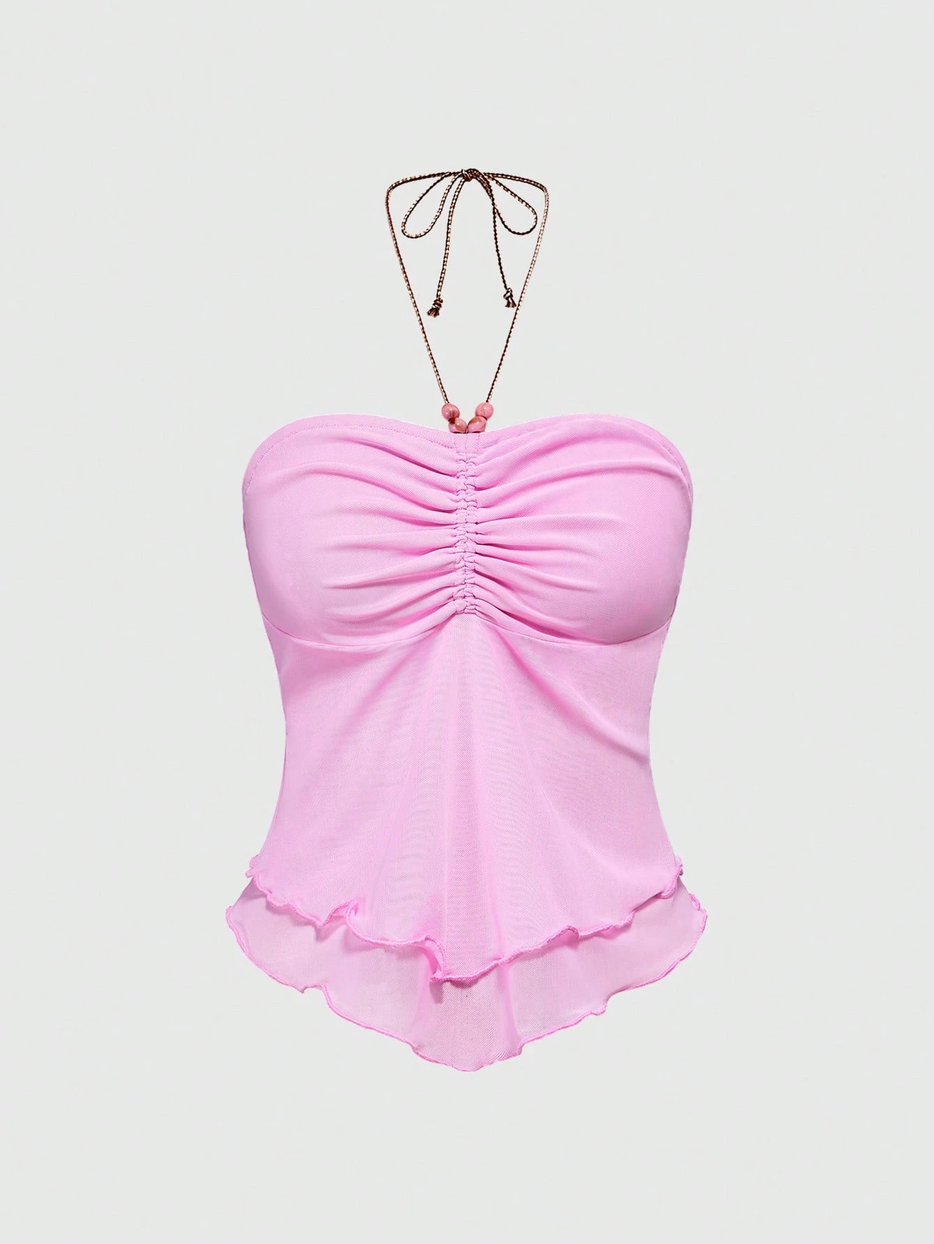 Hippie Women's Summer Plain Chest Ruched Asymmetric Hem Spaghetti Strap Top