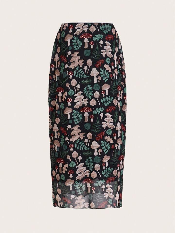 Inna Moreva Fairycore Mushroom Print Mesh Skirt
