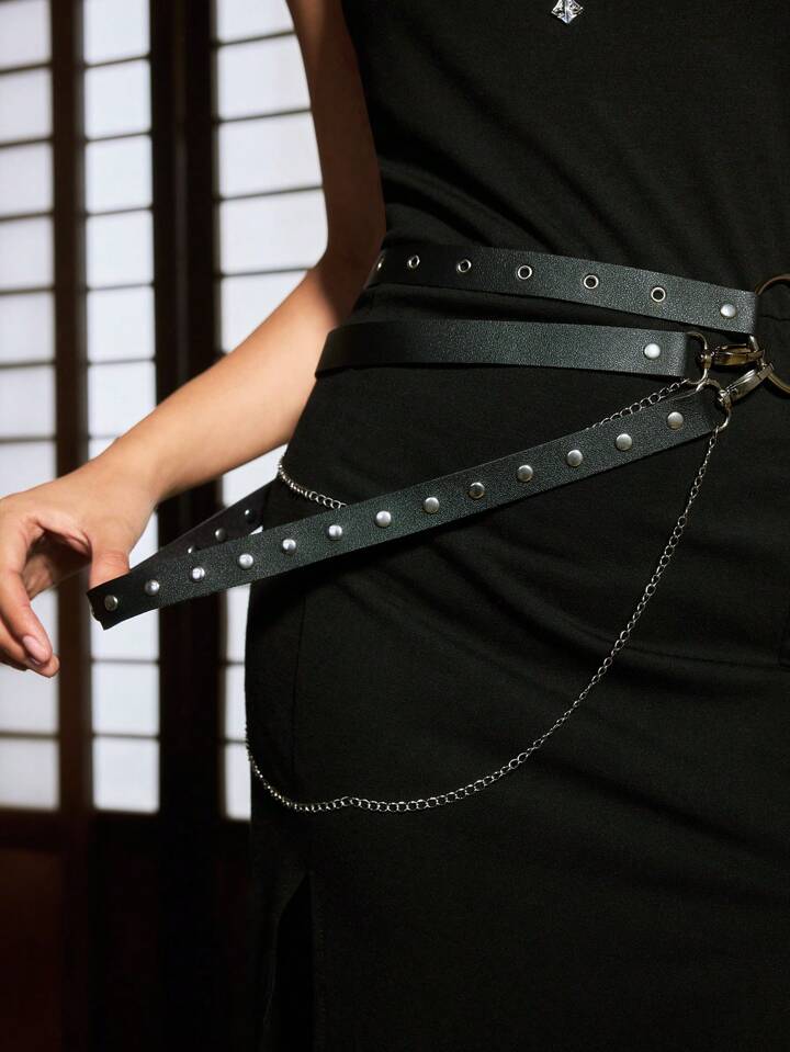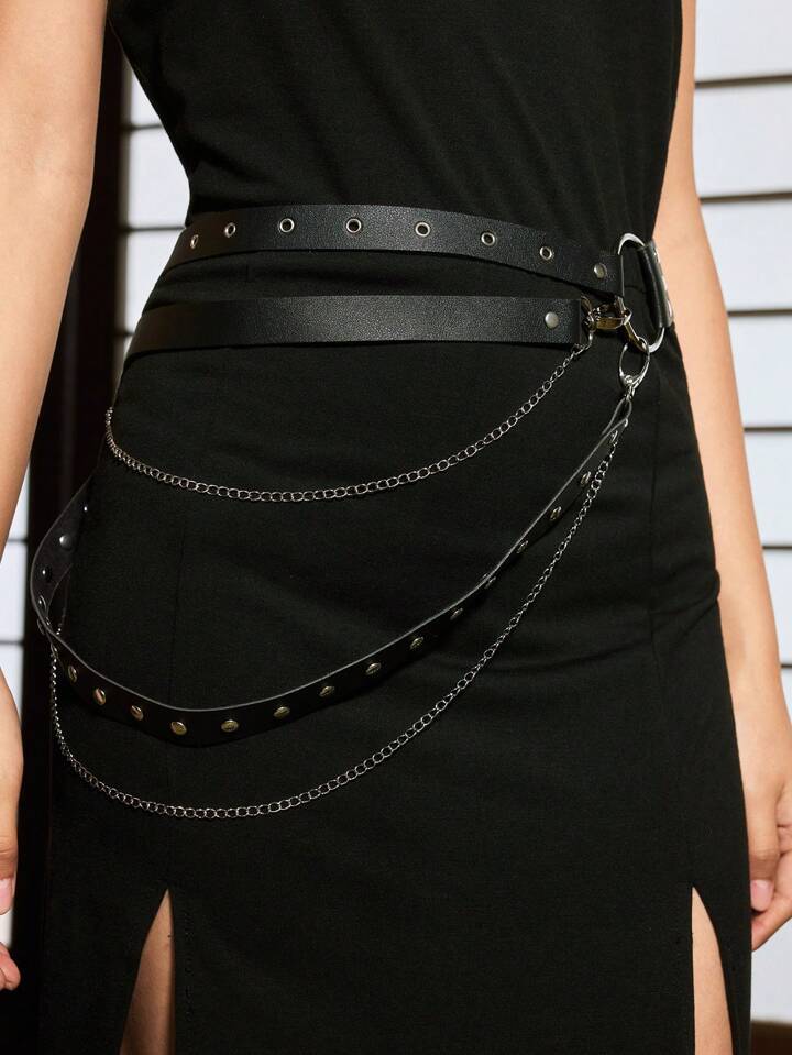 J-Fashion 1pc Multifunctional Waist Chain, Suspender Chain, Dark Punk Waistband, Leather Waist Chain, Leg Chain, Leg Strap