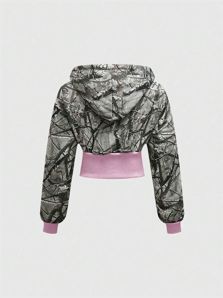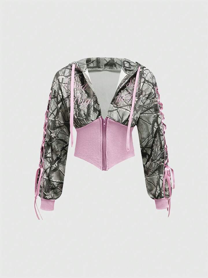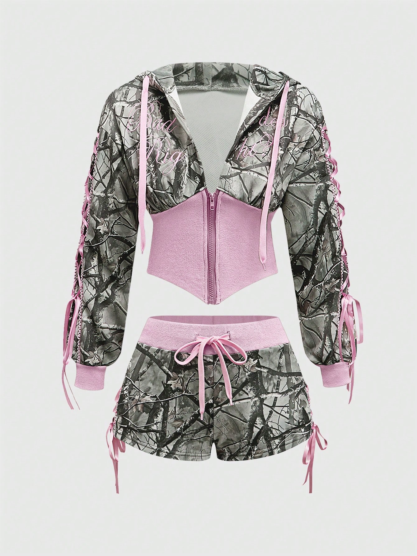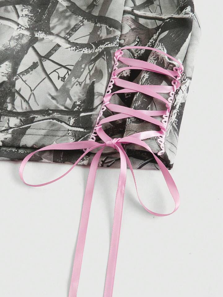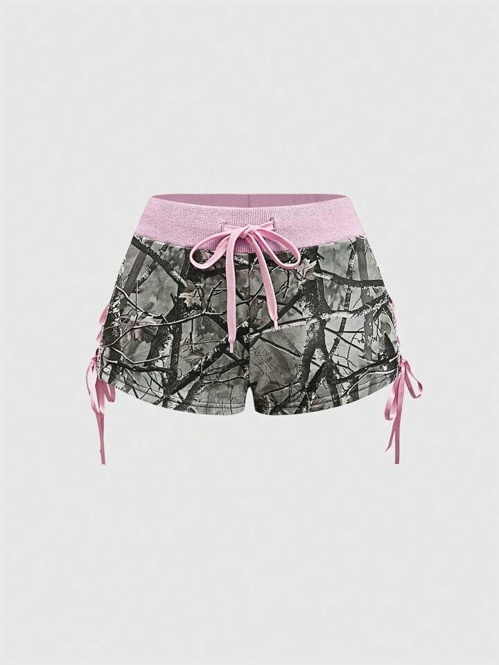 J-Fashion 2pcs Y2K Low Waist Sexy Camouflage Print & Embroidered Text Women's Set