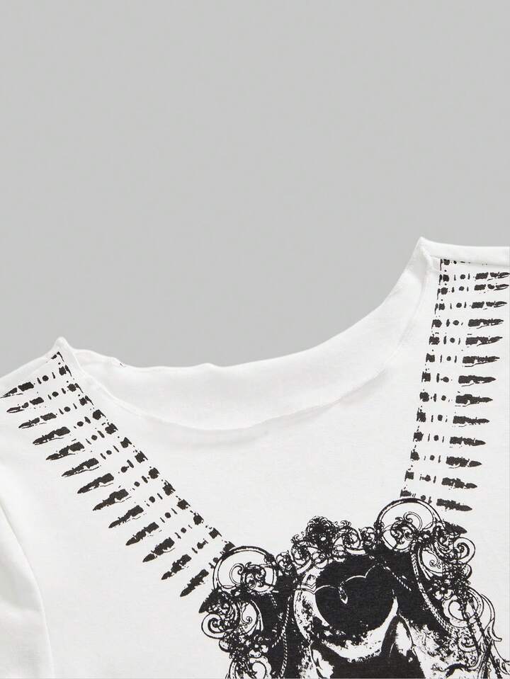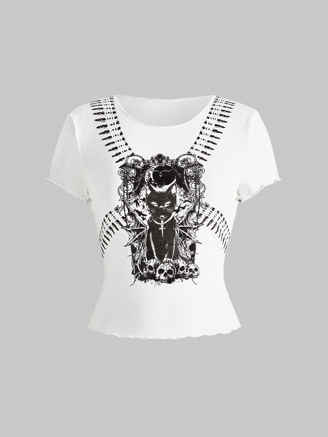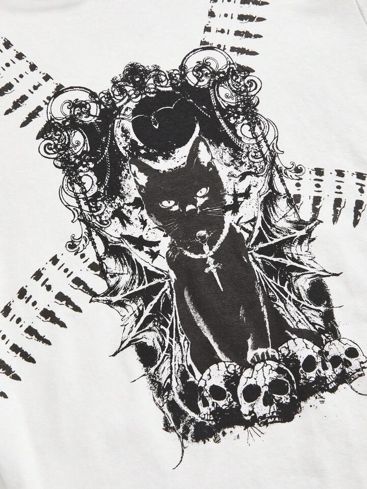 J-Fashion Bullet Black Cat Skull Print Punk Cropped T-Shirt