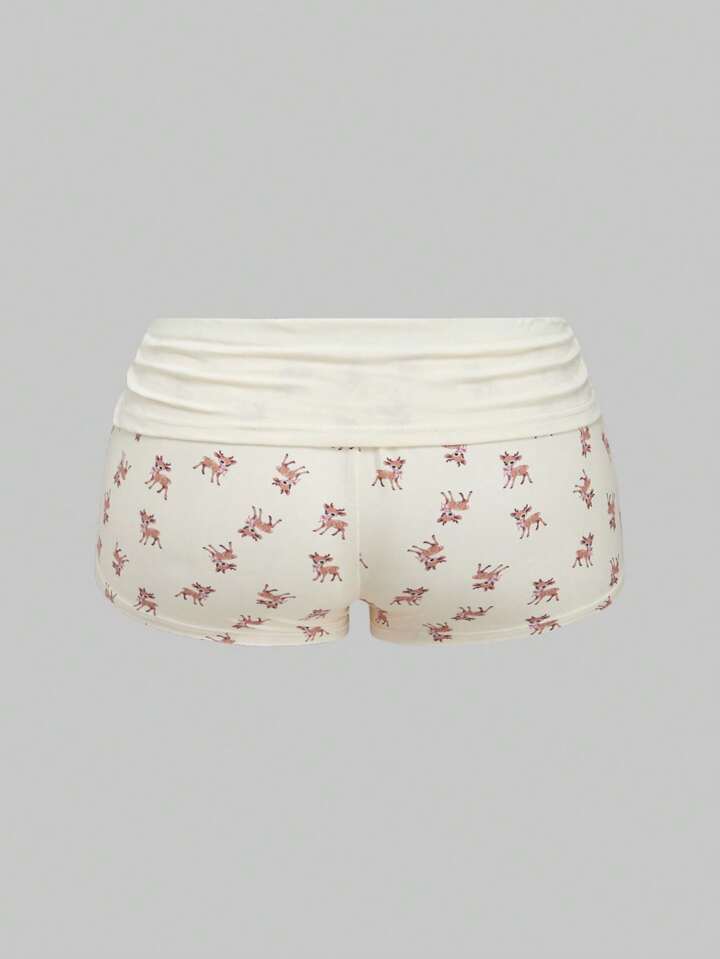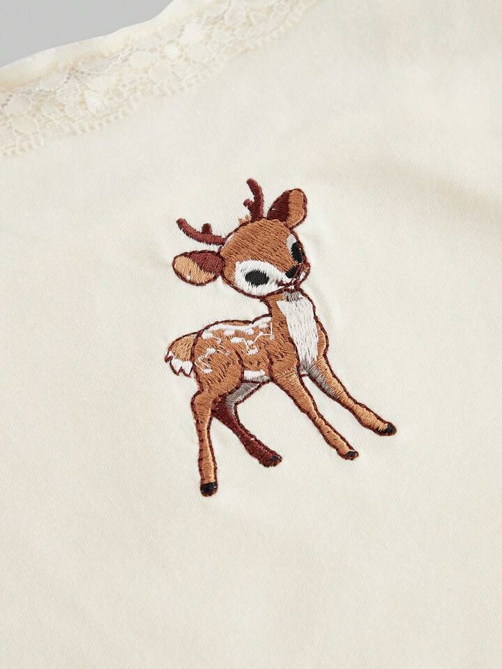 J-Fashion Cute Deer Embroidery Lace Blouse Paired With Deer All-Over Print Shorts