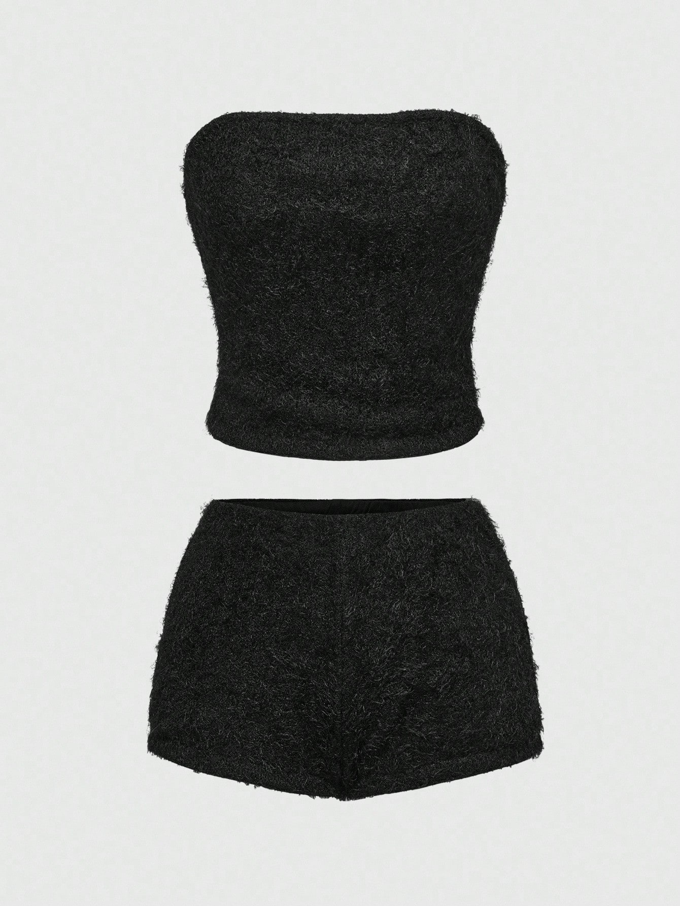 J-Fashion Fall Women Clothes Y2K Sexy Faux Fur Sweater & Shorts 2 Pieces Set For Women
