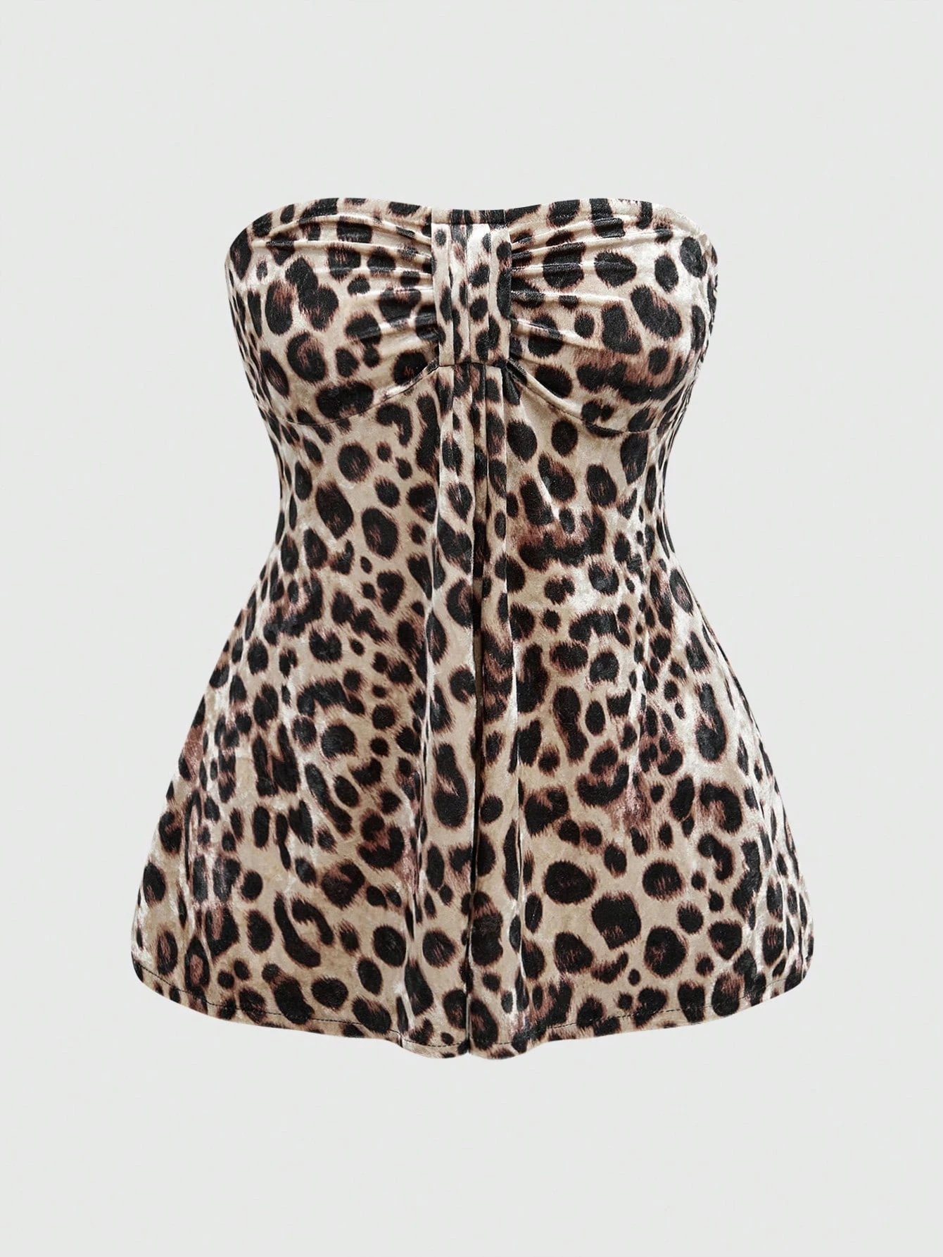 J-Fashion Plus Size Women's Y2K Leopard Print Midriff Baring Cropped Top For Summer