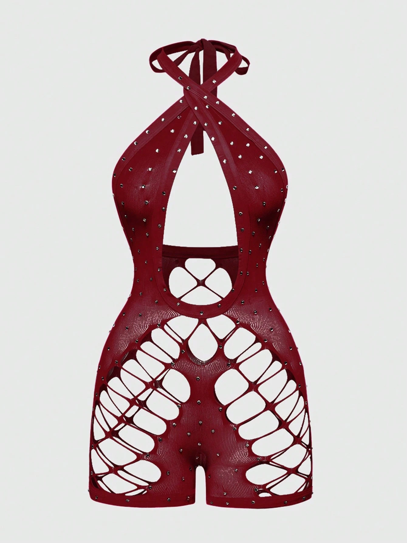 J-Fashion Sexy Glitter Rhinestoned Bodysuit For Women, Elastic Shining Y2K Music Festival Outfit