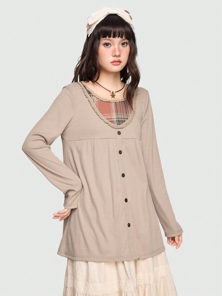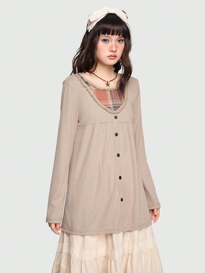 J-Fashion Women'S Plaid Patchwork Long Sleeve T-Shirt