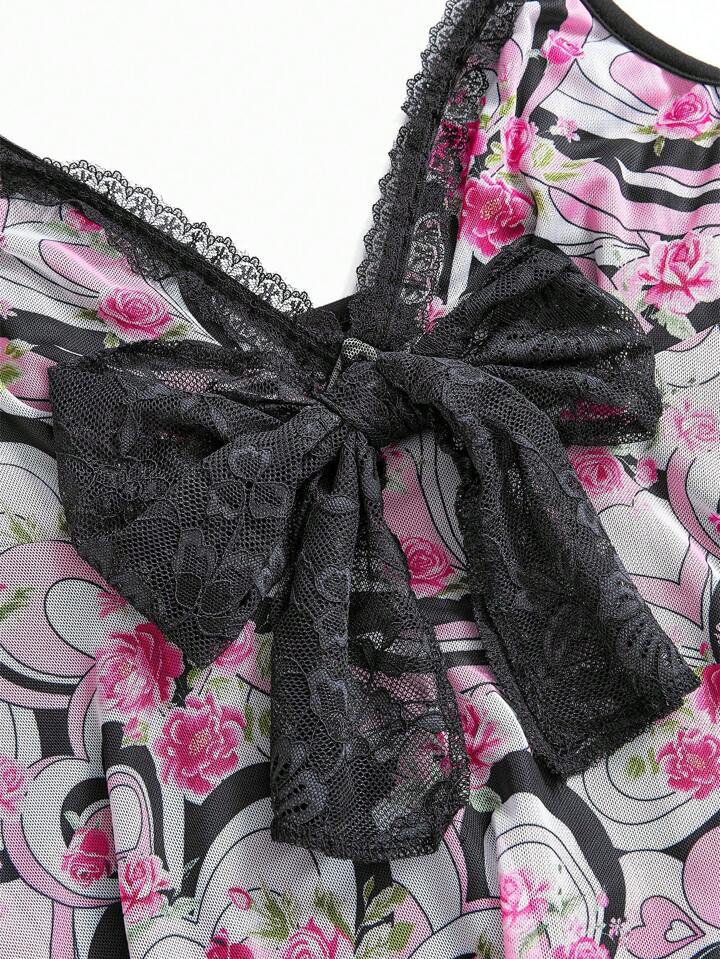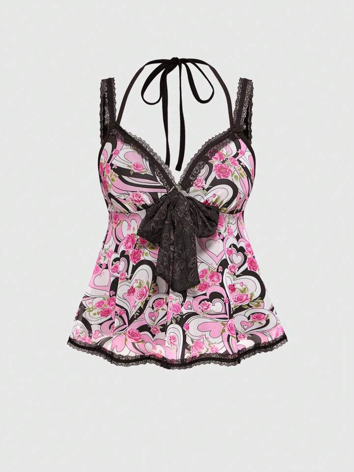J-Fashion Y2K Garyu Hime-Kaji Harajuku Girl Lace Floral Heart & Rose Print Top/Camisole For Women