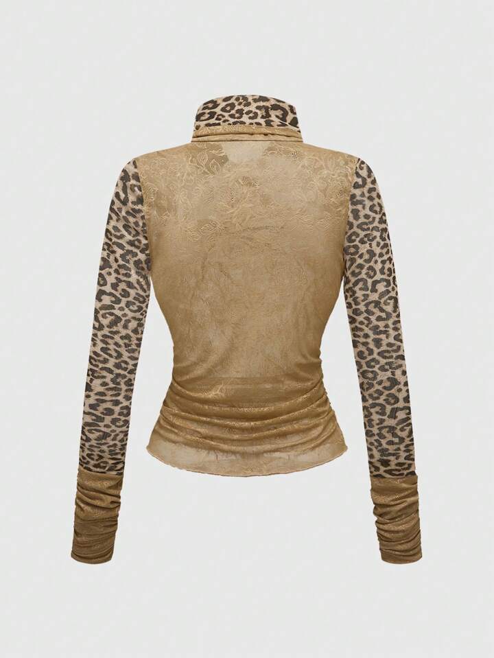 J-Fashion Y2K Gyaru Sexy Lace Leopard Print Sheer Spider Rhinestone Decor Tight Cropped Top For Women