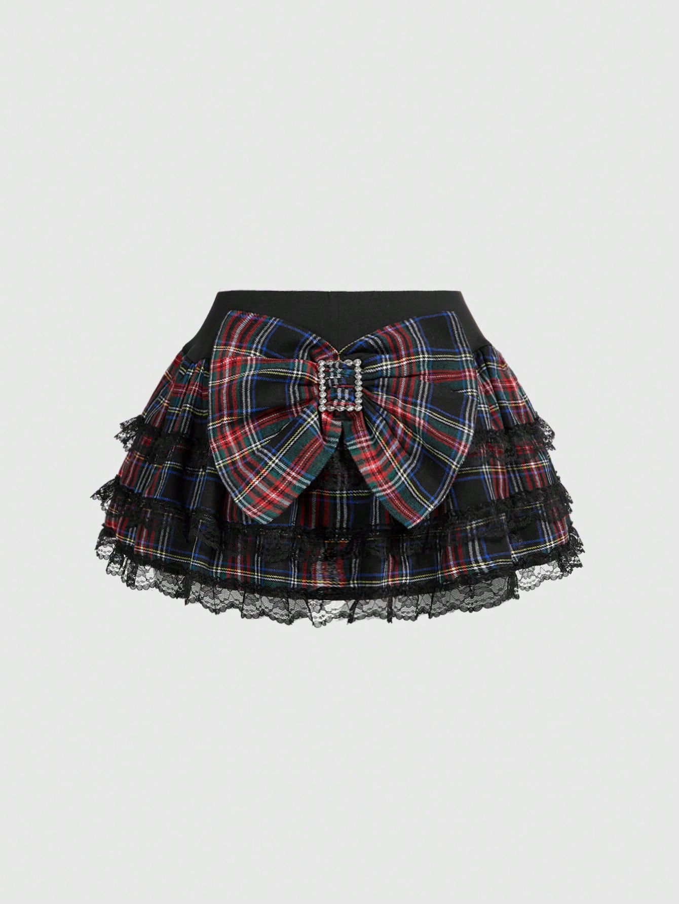 J-Fashion Y2K Harajuku Style Oversized Bow Low Waist Lace Trim Plaid Skater Skirt For Women