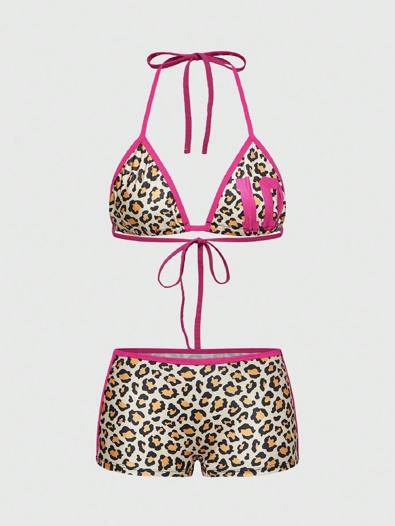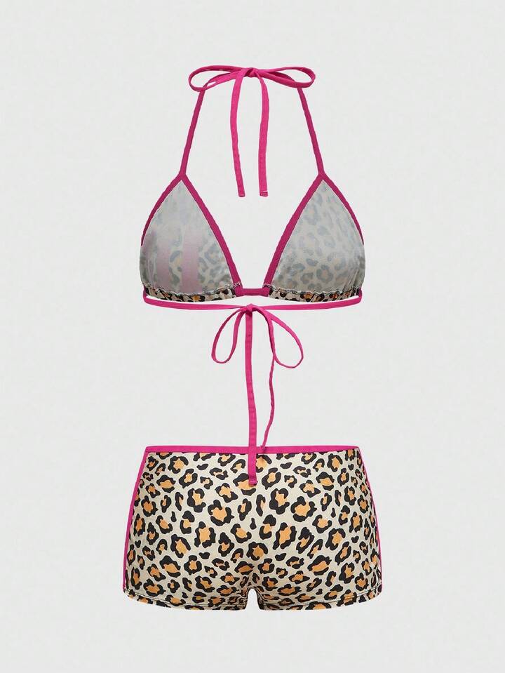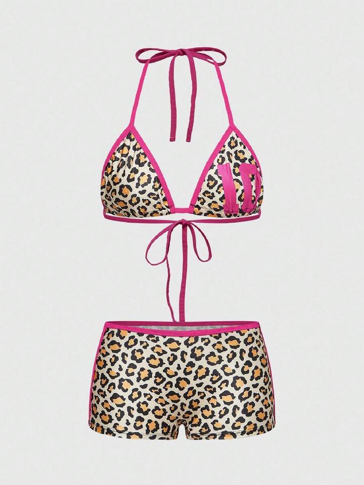 J-Fashion Y2K Leopard Print, Numeric Pattern Wireless Lace-Up Women's Lingerie Set