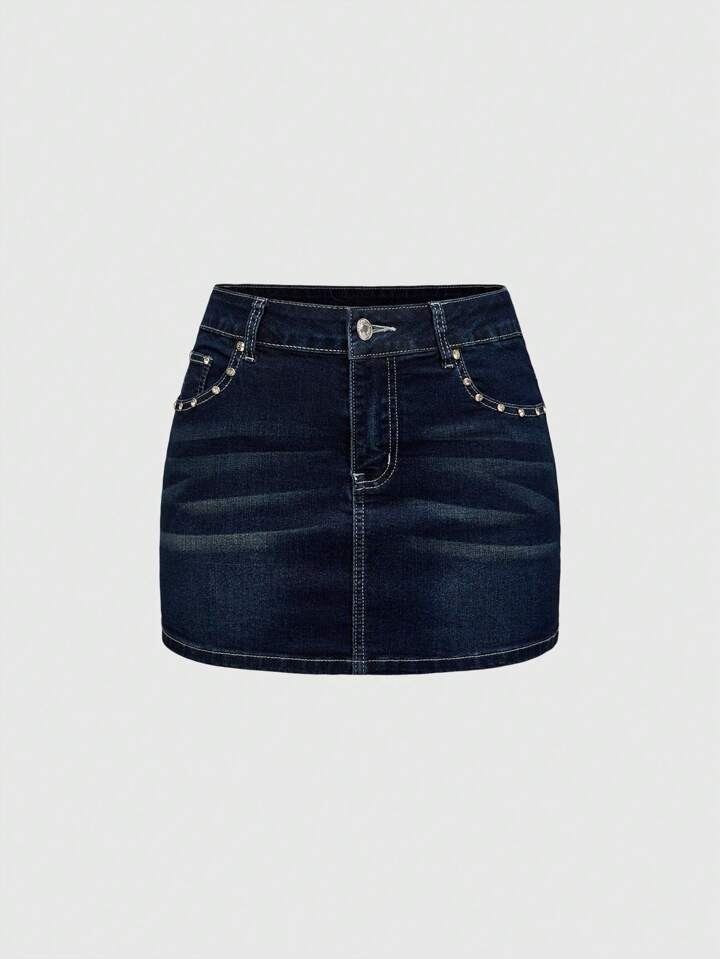 J-Fashion Y2K Style Cowgirl Low Waist Star Embroidery & Rhinestone Decor Denim Mini Skirt For Women