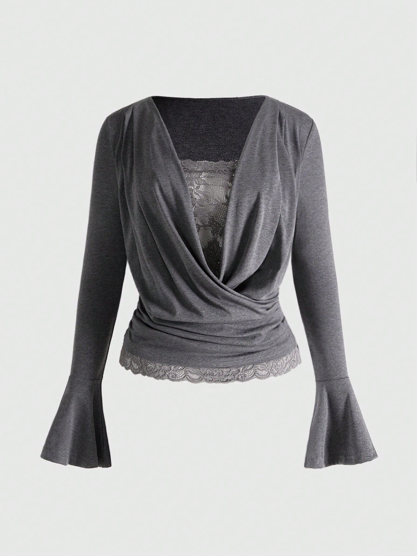 J-Fashion Y2K Vintage Millennium Baddie Contrast Lace Draped Neck T-Shirt For Women