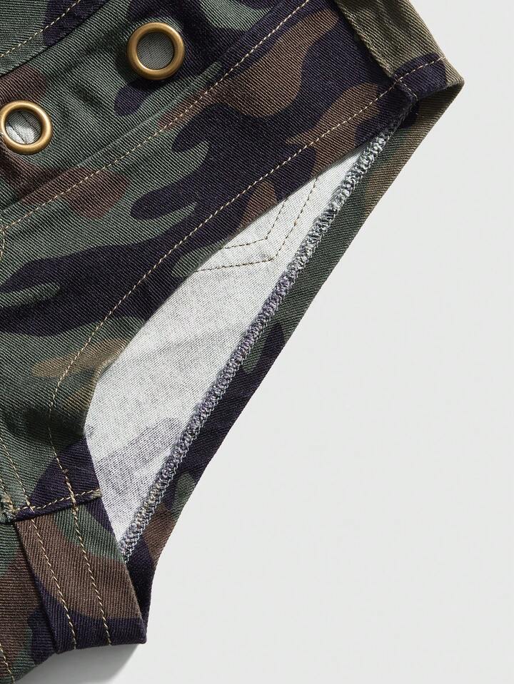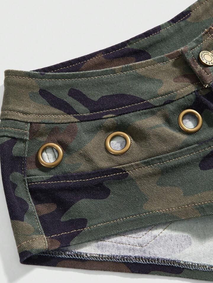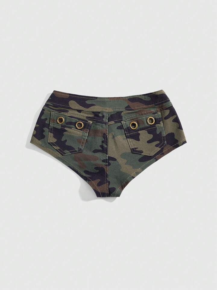 J-Fashion Y2K Vintage Ultra Low Waist Super Short Camouflage Grommet Decor Women's Denim Shorts