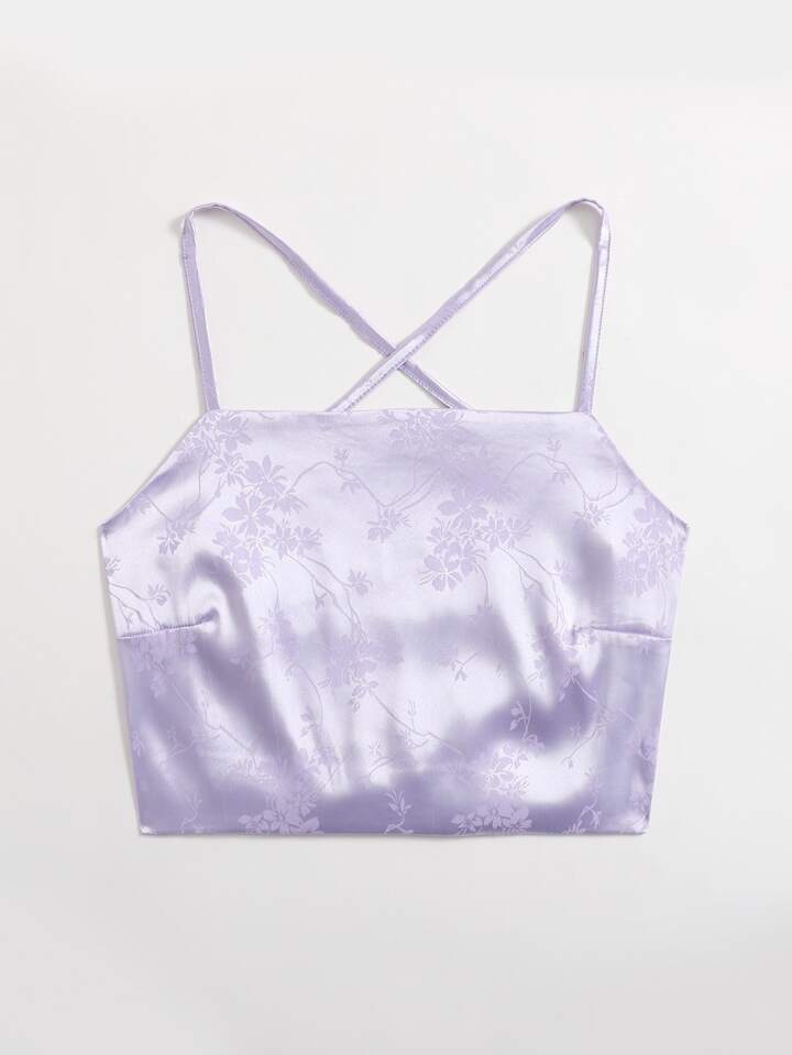 Jacquard Satin Criss Cross Crop Cami
