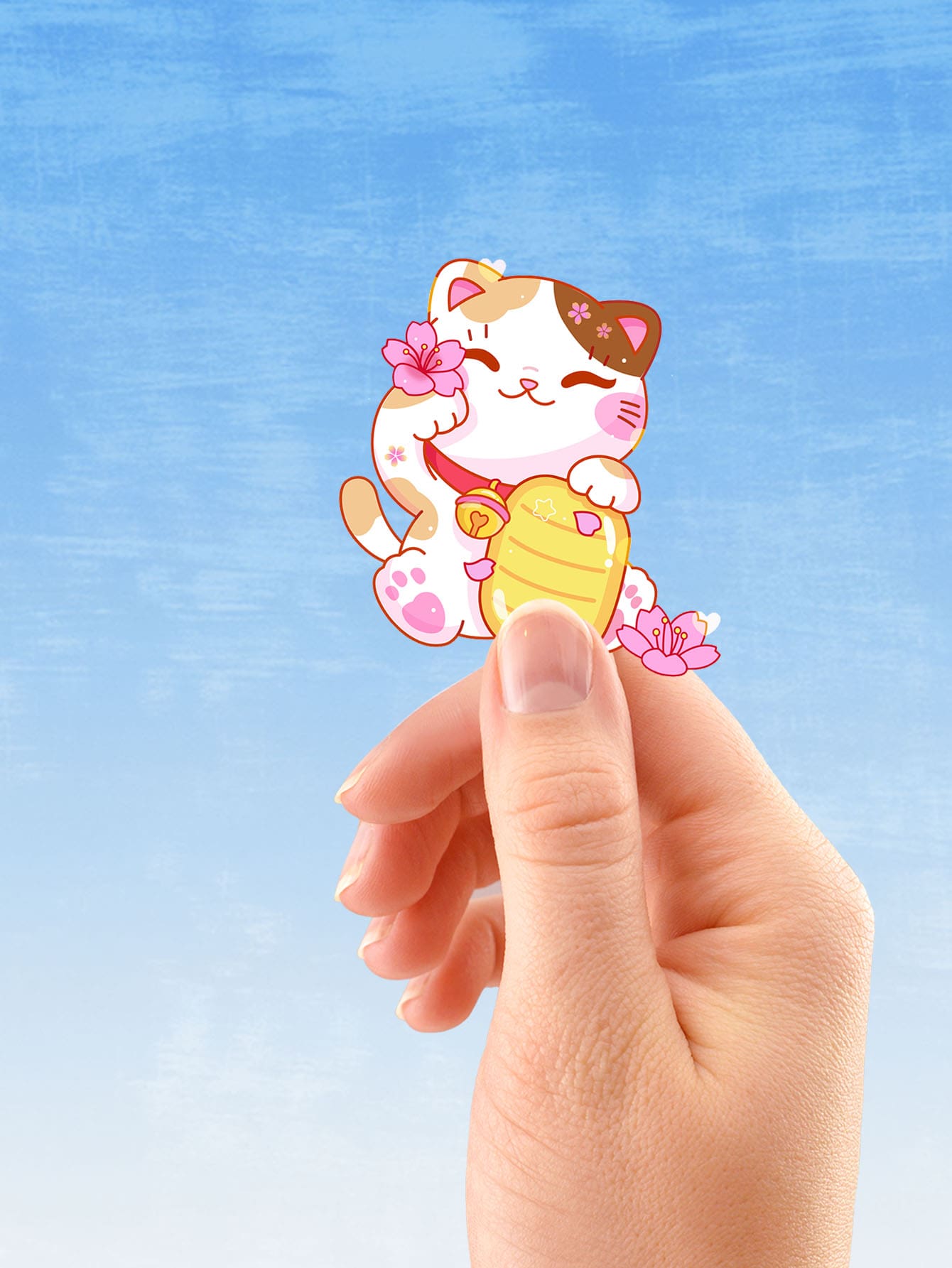 JullDiaz Cartoon Cat & Flower Print Sticker