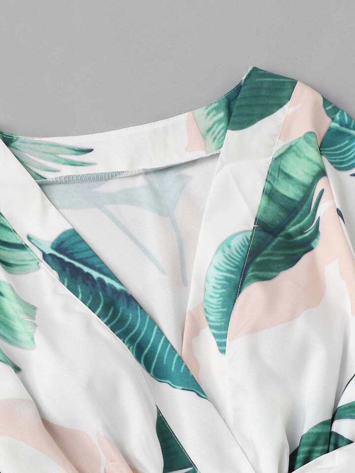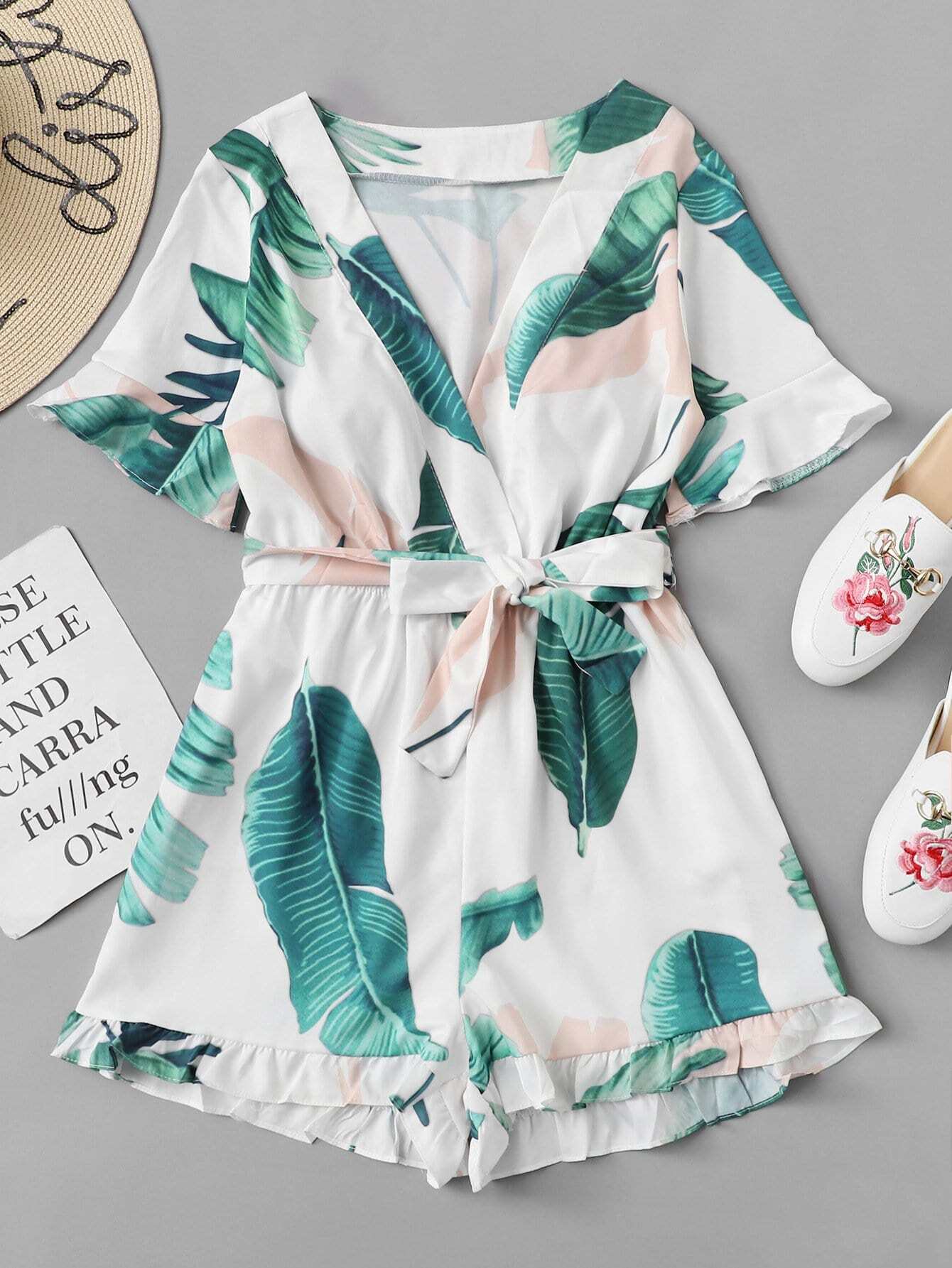 Jungle Print Ruffle Trim Surplice Romper