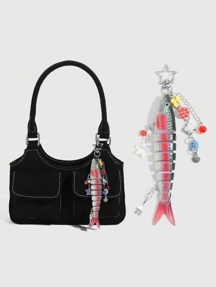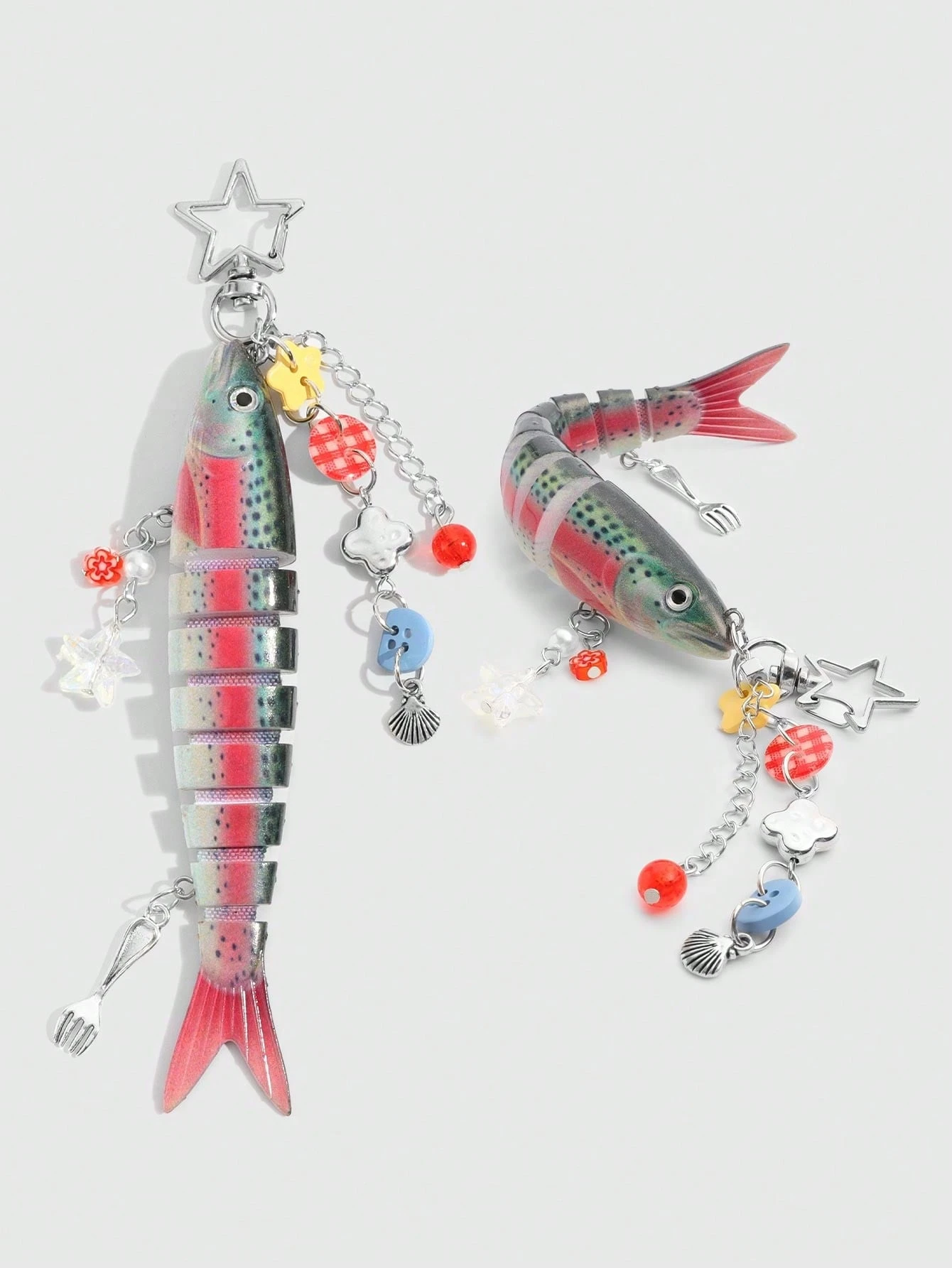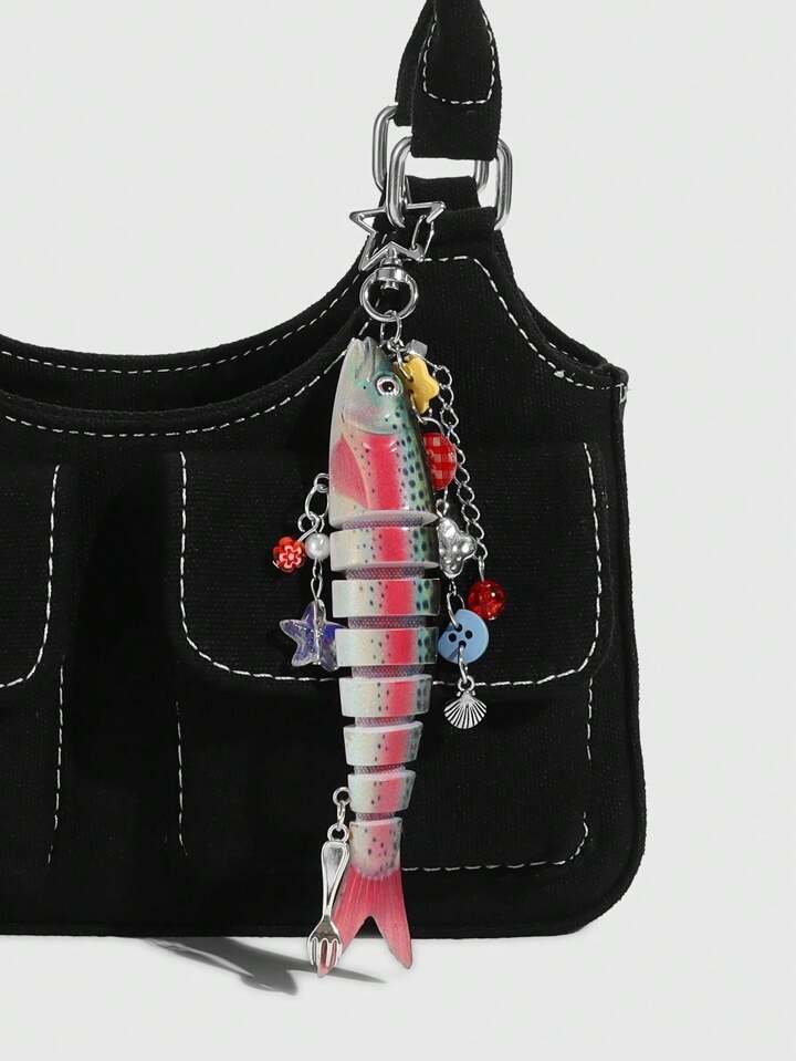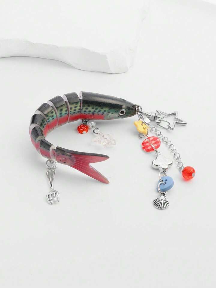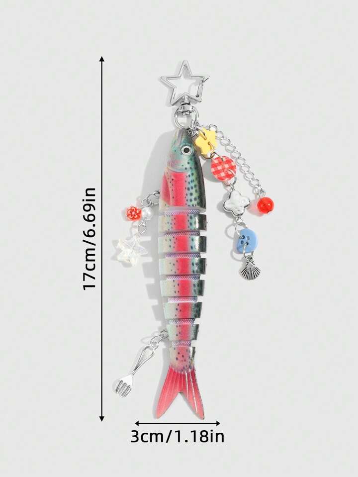 Kawaii 1 Handmade Ocean Themed Shell Fish Keychain, Bionic Fishing Lure, Mulit-Hook Lure Pendant, Vacation Style