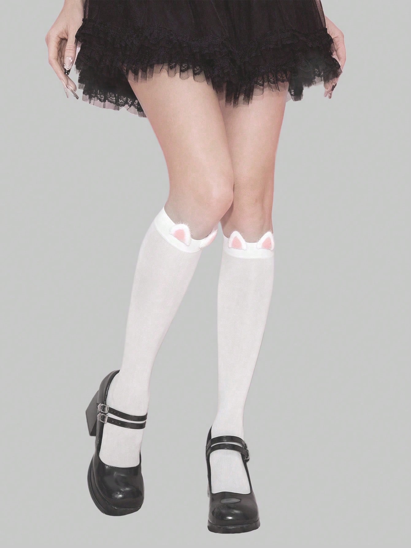 Kawaii 1 Pair Cute Pink Fluffy Cat Ear Mid-Calf Socks, Minimalist Sweet Style Leg Warmers, Versatile Daily Wear JK School Uniform Socks For Women
