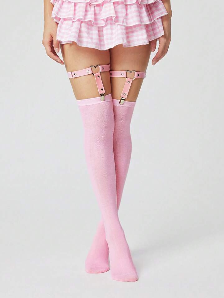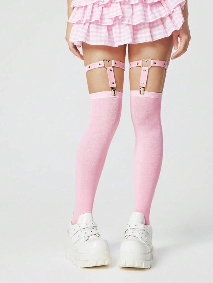 Kawaii 1 Pair Cute Pink Thigh High Socks + 2pcs Pink Leg Warmers, Y2K Style Matching Set, Everyday & Party Wear Socks