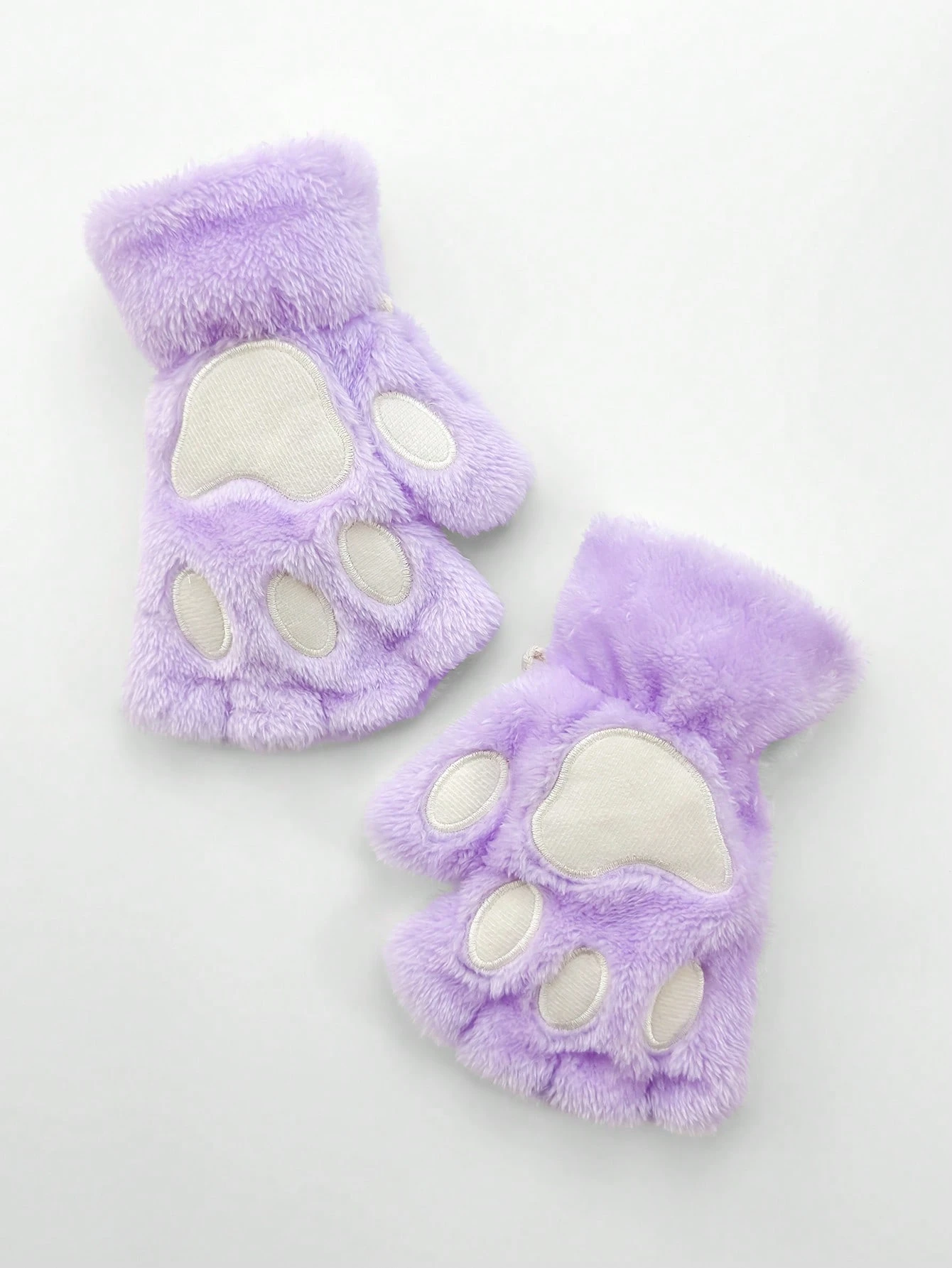 Kawaii 1 Pair Plush Cat Paw Fingerless Gloves, Suitable For Daily Wear