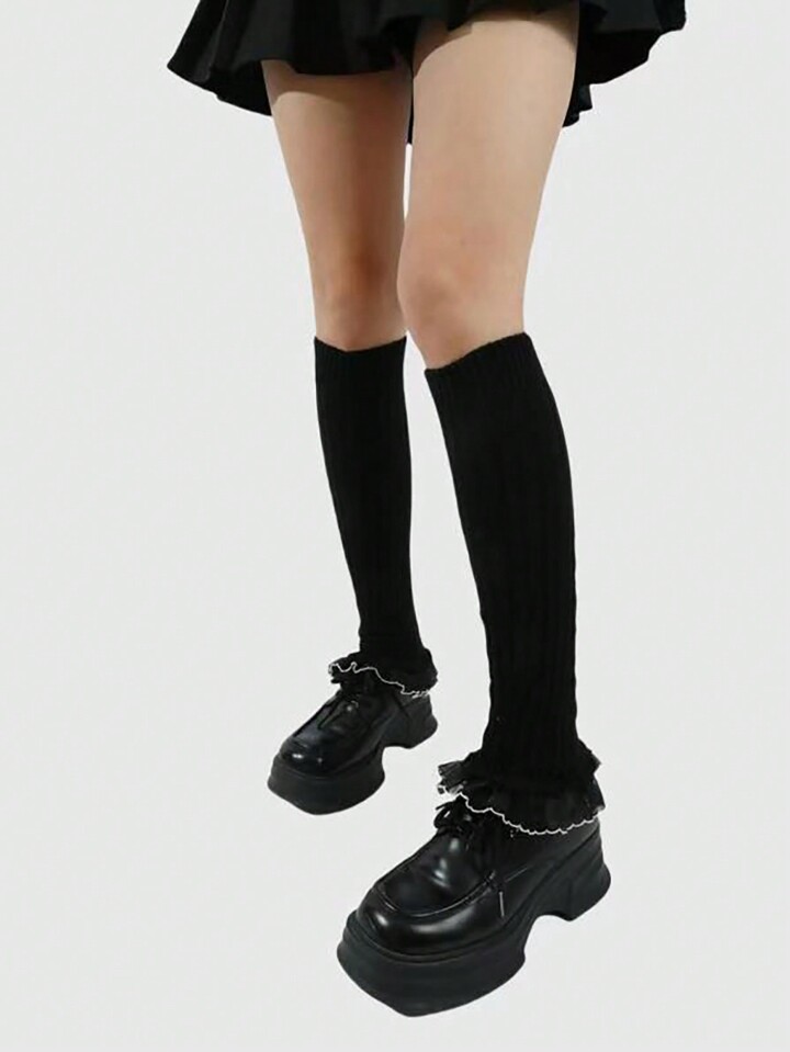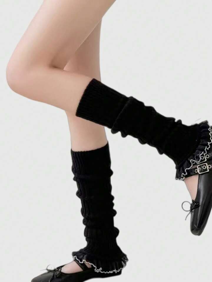 Kawaii 1 Pair Women Gothic Black Lace Knitted Leg Warmers, Suitable For All Seasons, Halloween