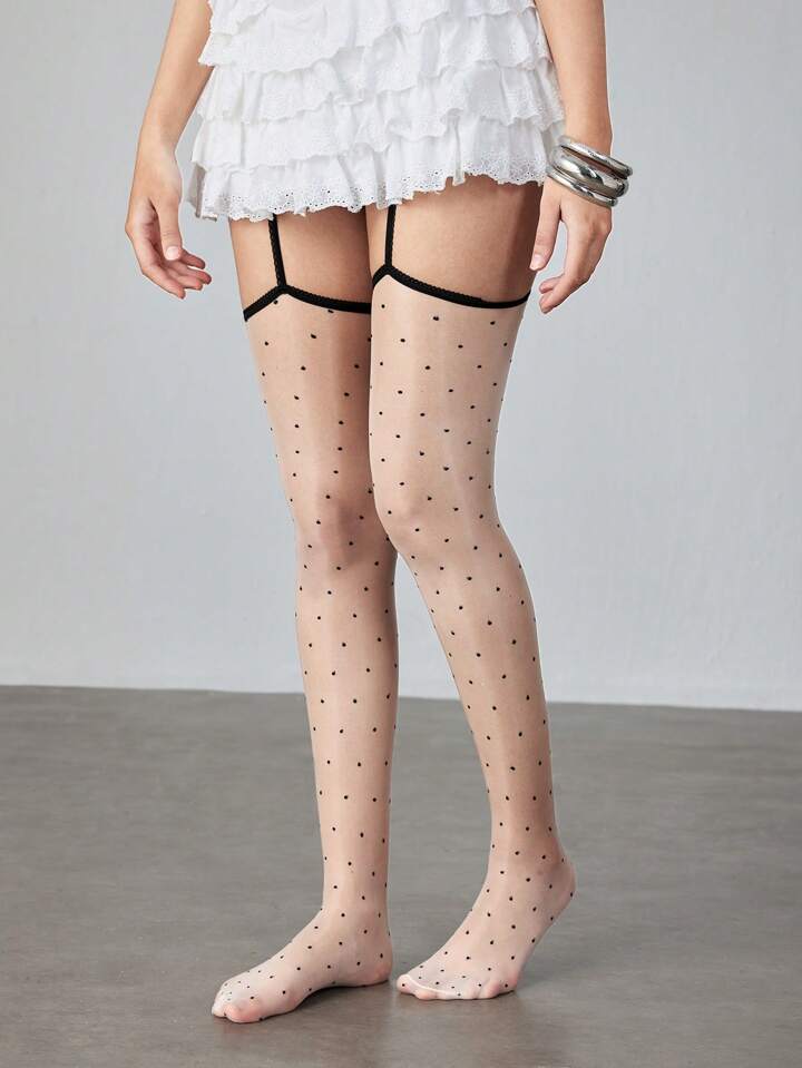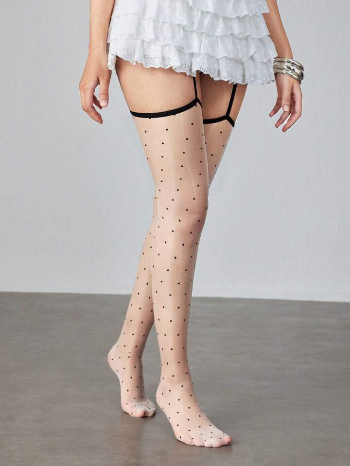 Kawaii 1 Pair Women Polka Dot Laser Shiny Fuchsia Camisole Socks, All Season