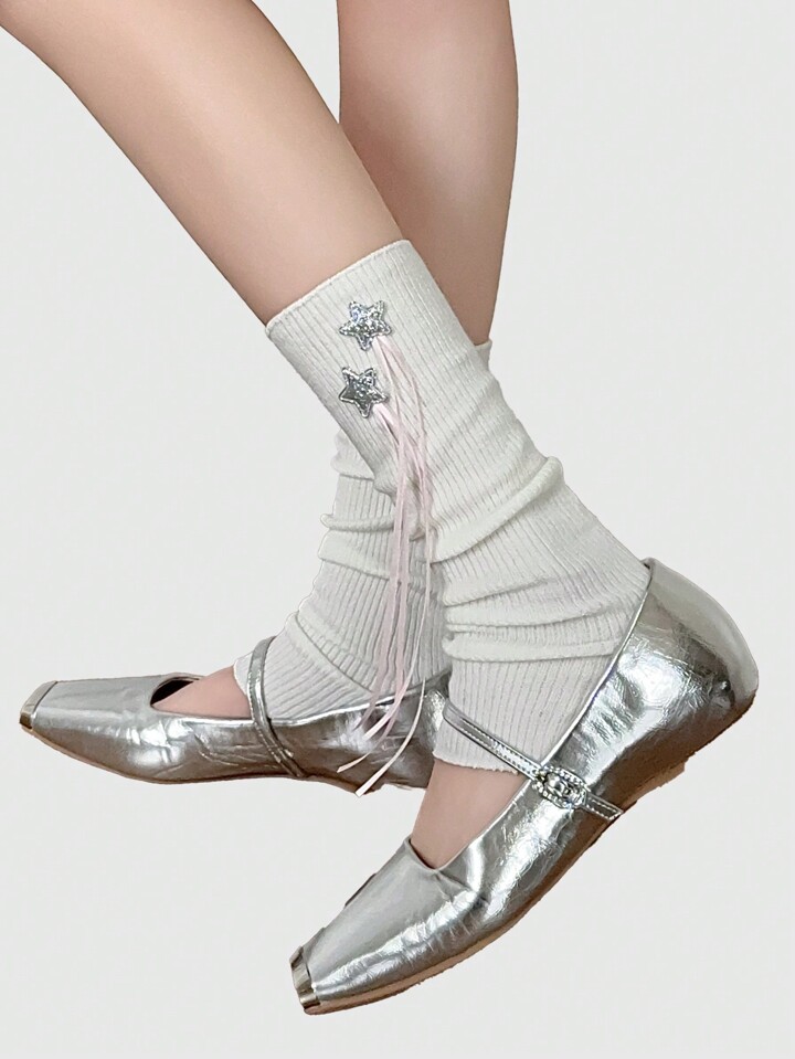Kawaii 1 Pair Women's White Meteor Decor Leg Warmers