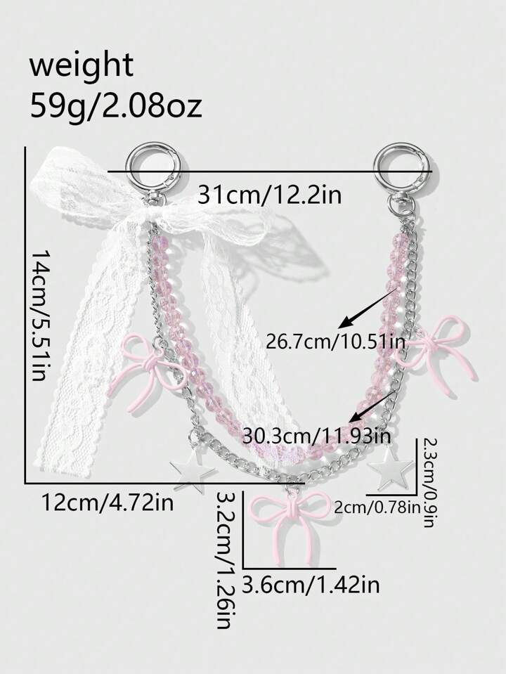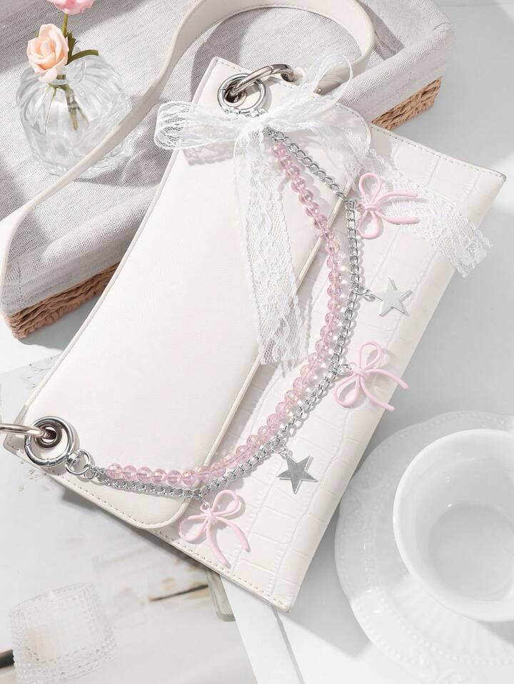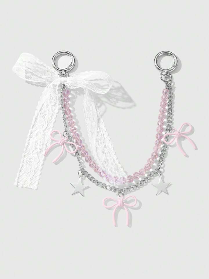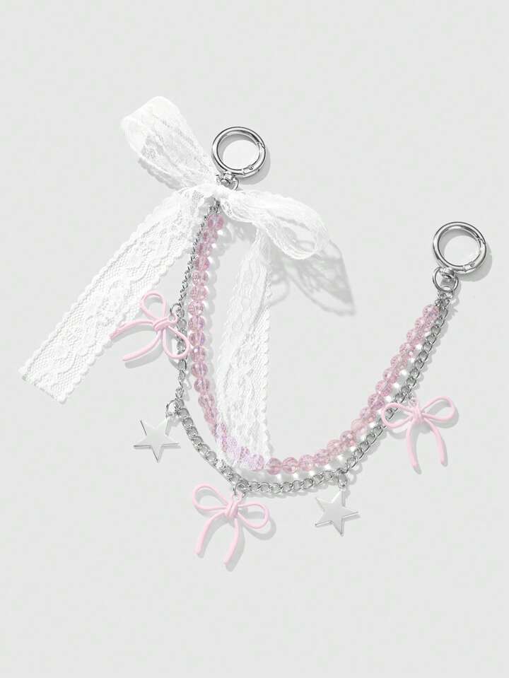 Kawaii 1 Pc Girly Handmade Beaded Charm With Crystal, Lace, Bowknot And Star Pendant, Versatile Keychain Or Bag Accessory, Ideal Gift For Women & Girls