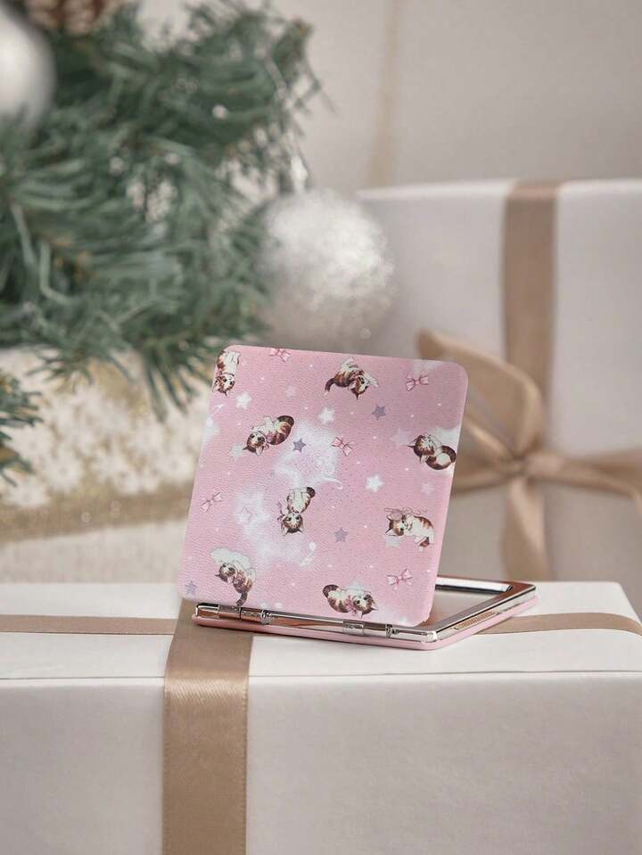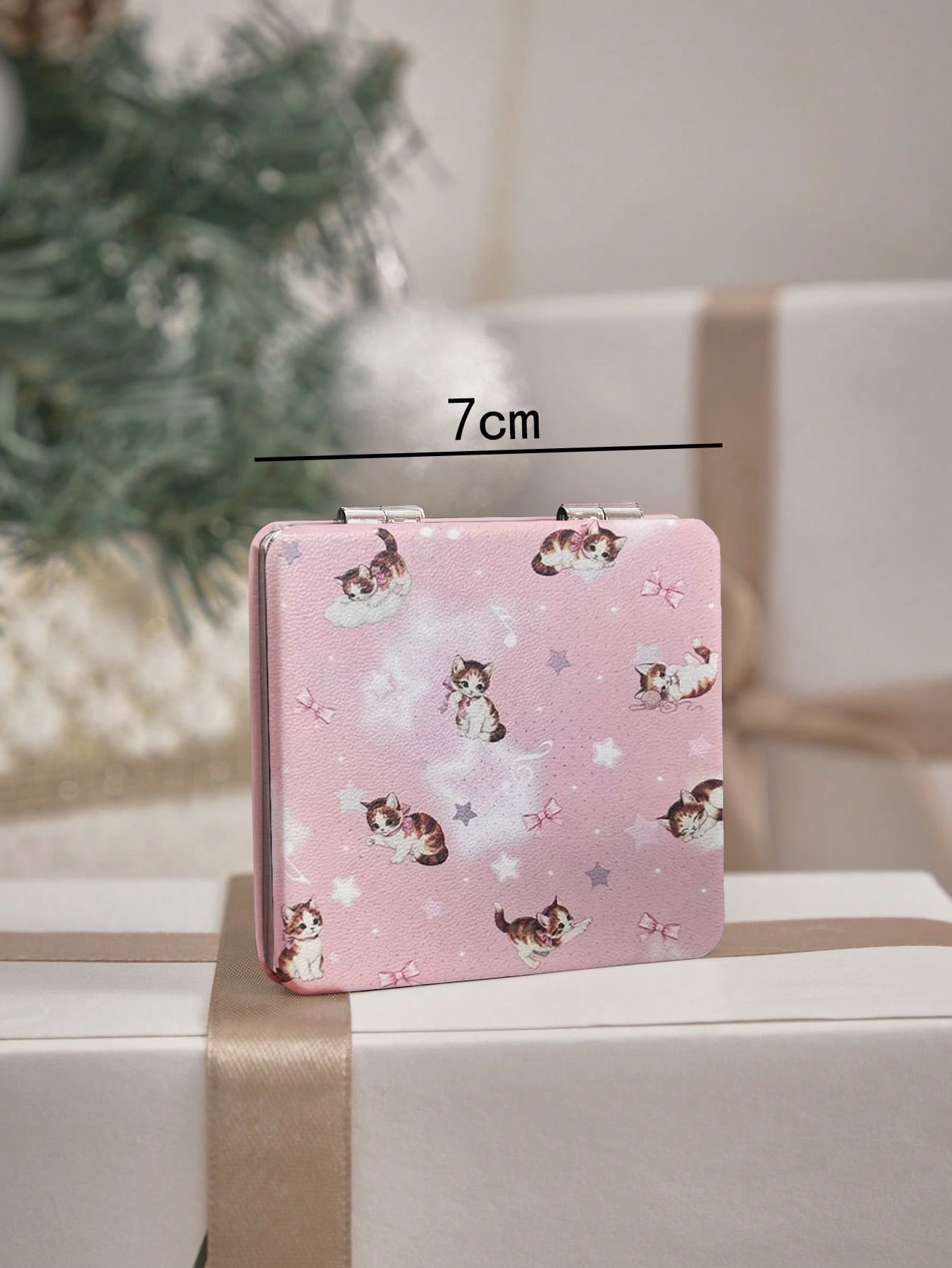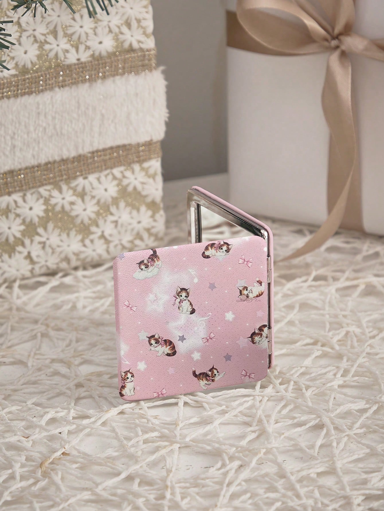 Kawaii 1 Pc Pink Bow & Heart Pattern Square Makeup Mirror, Portable Handheld Mirror For Girls (Pattern Placement Random)