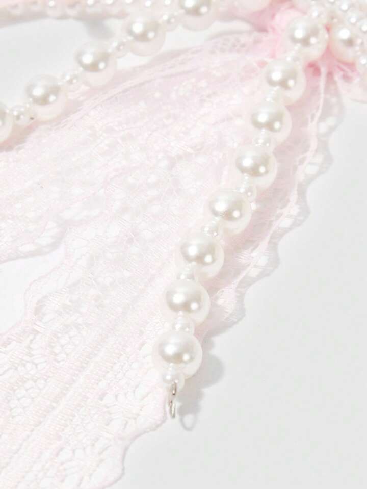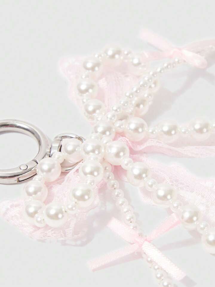 Kawaii 1 Piece Pink Lace Bow & Pearl Keychain/Bag Charm