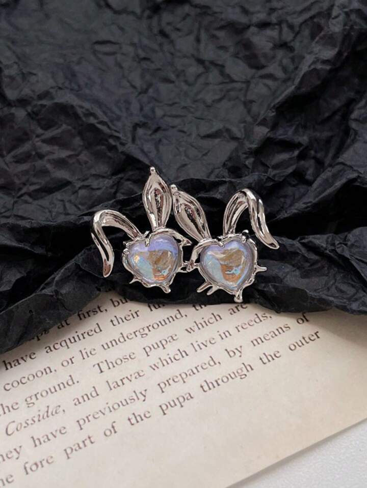 Kawaii 1pair Rabbit Ear & Heart Shaped Stud Earrings