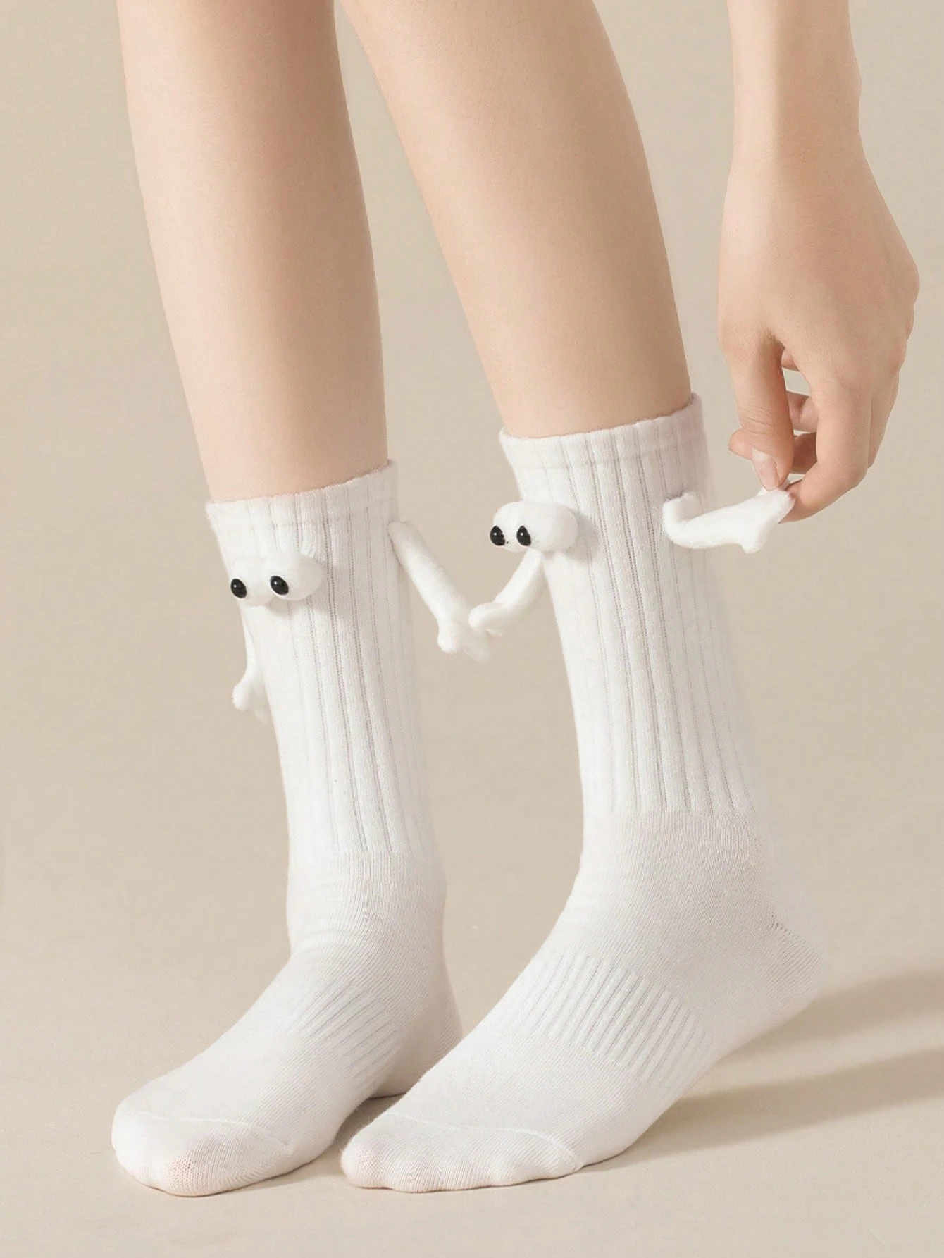 Kawaii 1pair Women Eye Decor Magnetic Crew Socks
