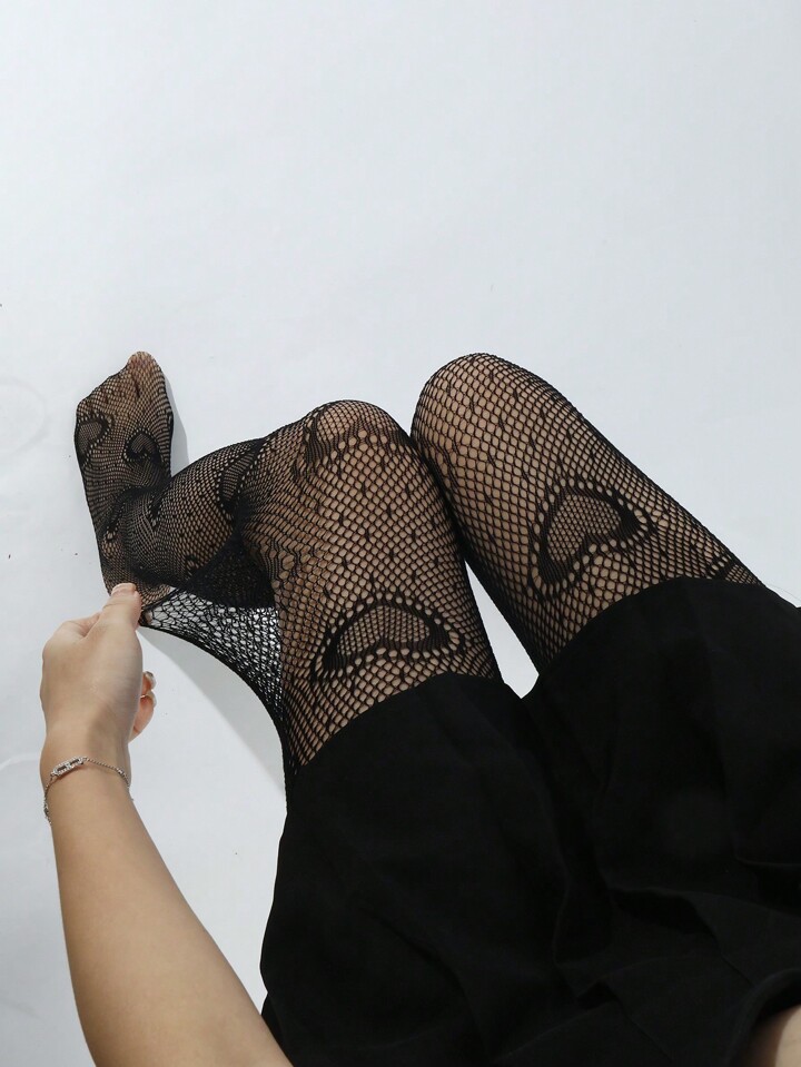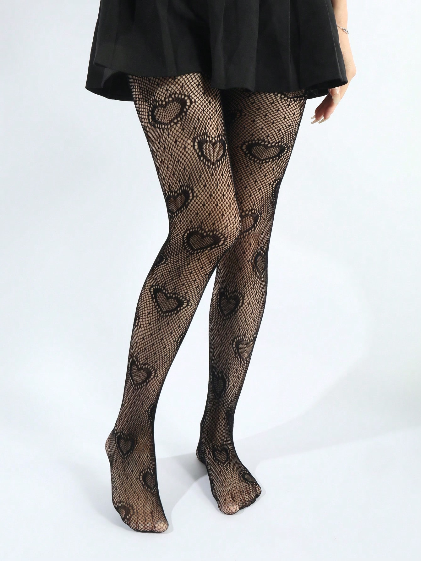 Kawaii 1pair Women Heart Pattern Fishnet Tights