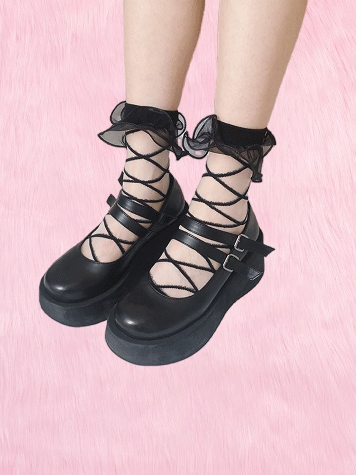 Kawaii 1pair Women Ruffle Trim Sweet Style Crew Socks, For Lolita